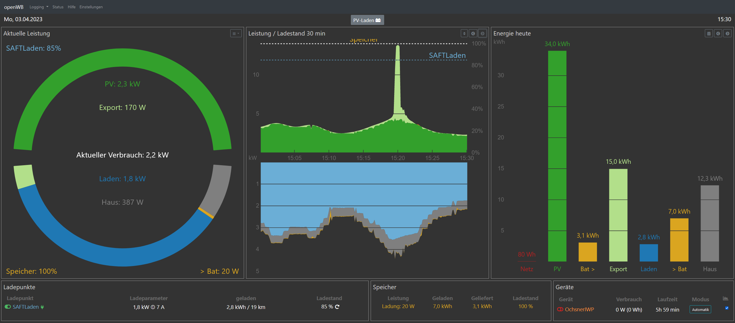Nun möchte ich Euch gleich einen Kurzbericht zu PV-geführtem Laden (ich hoffe jeder weis was gemeint ist) oder auch Überschussladen genannt geben.