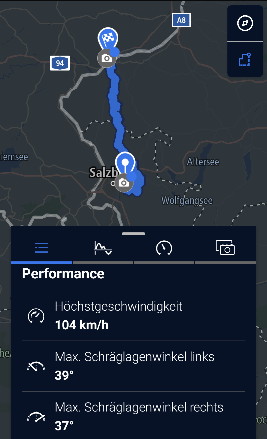 Ich beginne inzwischen, meine fahrdynamischen Optionen aus der Sofa Sitzposition auszuloten, beweglicher zu werden und zu testen, was wirklich geht. Bin dabei sehr froh um die bisher tadellosen Pirelli Serienreifen.