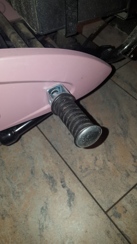 Da die Fußrasten bei dieser Lösung offenbar an der Hinterradschwinge befestigt sind, dürften die Füße des Beifahrers besonders auf unebener Fahrbahn etwas durchgeschüttelt werden. Hast du das schon getestet und kann man damit leben?