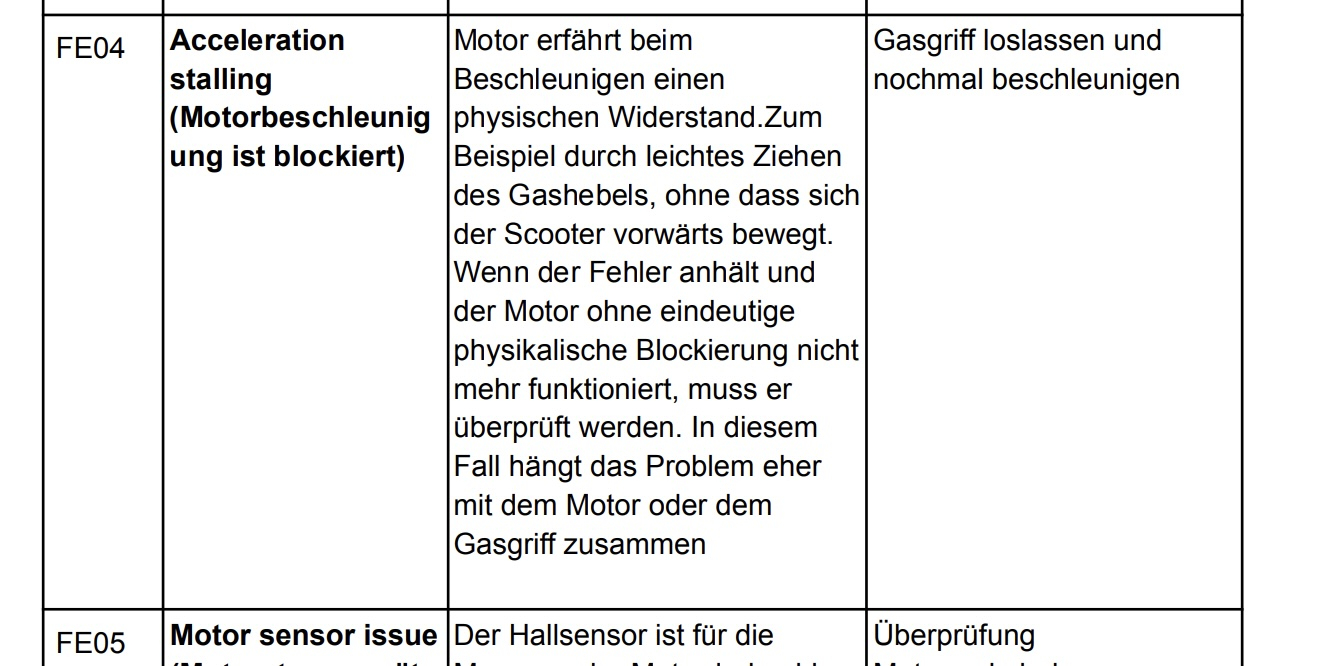 Ich starte den scooter ganz normal ohne irgendwas anzufassen oder anzuziehen, dann wird gefahren. Wenn man dann bei 3 balken ankommt und bspw an einer ampel zum stehen kommt und ich dann den griff zum beschleunigen nutze (egal ob wenig oder viel) kommt nach dem ersten Anfahrversuch des rollers (er nimmt schon gas an und fährt los) ein ruckartiger aussetzer, dann der Fehler und er verlangt, dass ich den griff weider zruücksetze. Erst dann kann ich wieder beschleunigen. das geht dann so 2-4 mal so weiter bis ich genug Geschwindigkeit hab, dass er den fehler nicht mehr anzeigt. Ziehe den Gashahn aber trotzdem noch voll an.