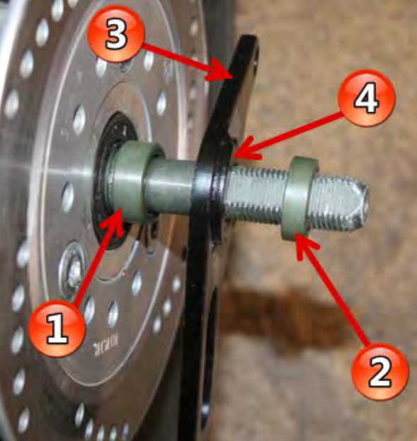 Dein Bild ist etwas schwierig einzuschätzen. Mir kommt Nr1 schon etwas komisch vor. Normalerweise gehört auf die Motorachse als erstes eine Unterlegscheibe mit abgeflachter Bohrung, welche sich am Übergang von "abgeflacht zu rund" abstützt und das Gegenlager zur Achsmutter bildet.