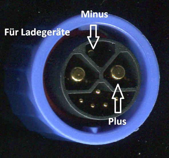 Der nicht gekennzeichnete dicke Pin ist Batterie Minus.