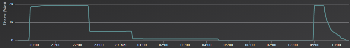 Was dagegen spricht, ist aber die Tatsache, dass er mehrere Stunden am Ladegerät hing und nur die 10 Watt gezogen hat. Da müsste der Akku je wieder kalt sein. Es sei denn, der Controller kann nur runter regeln, nicht wieder hoch. Erst beim Neustart.