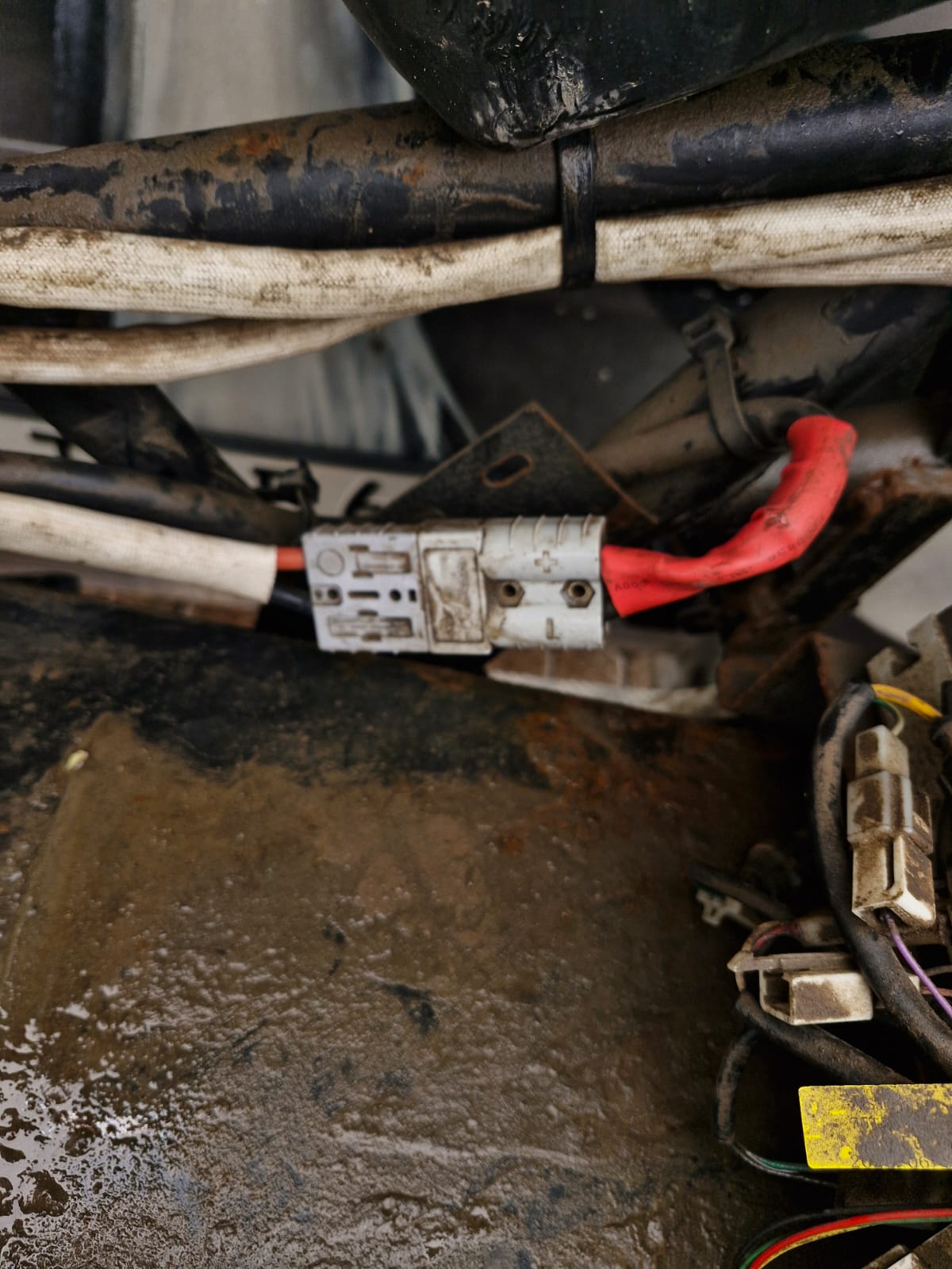 Aus der Batterie kommen 2 Kabelpaare, geschätzt 16mm2, die gehen an den Grauen Stecker und dann ans Ladegerät.