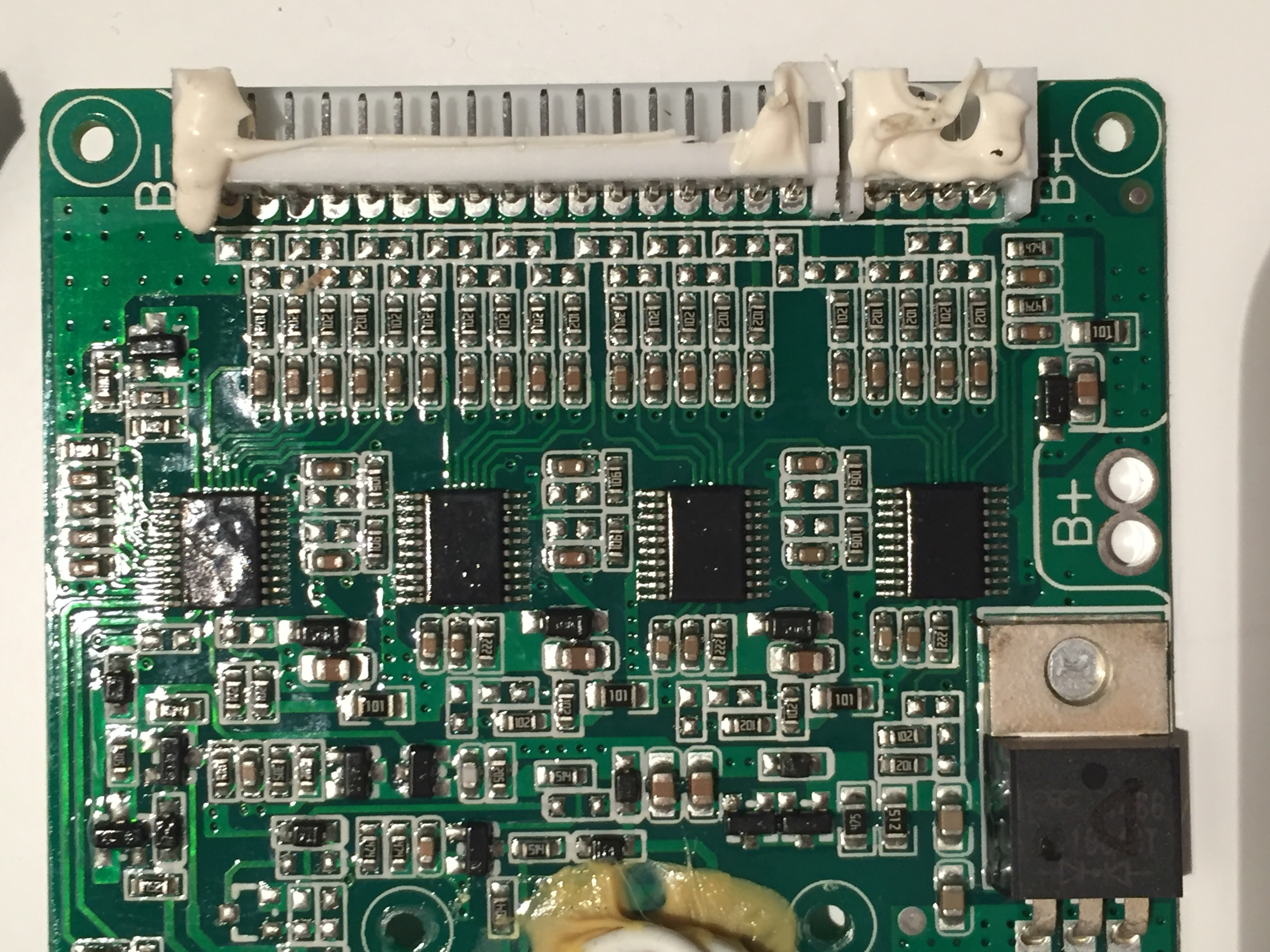 Aufgrund des identischen Fehlerbildes der einzelnen Akkus habe ich die BMS genauer unter die Lupe genommen und versucht die Schaltung zu analysieren. Sorry, das wird jetzt etwas länger.