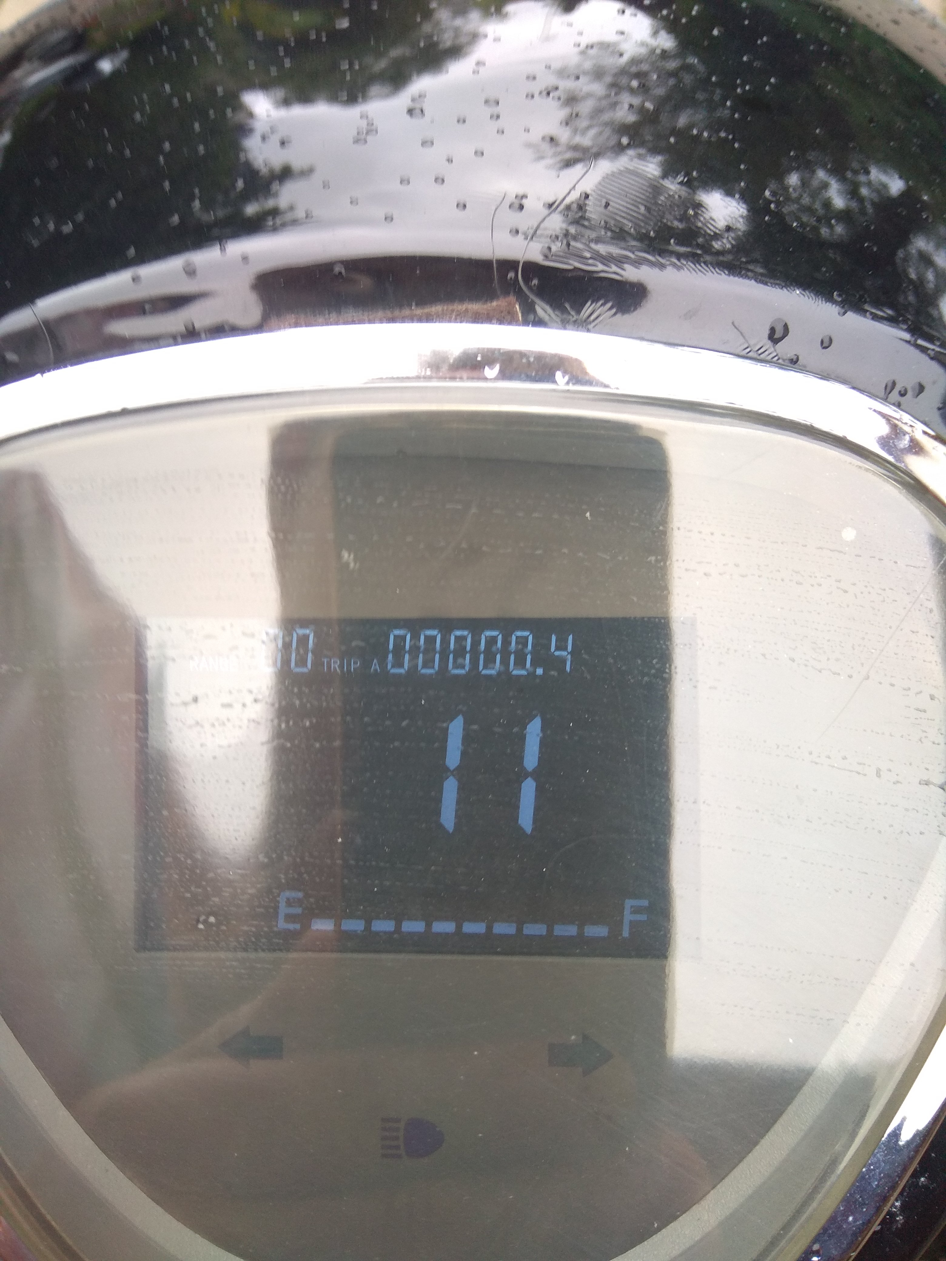 Leider geht wie erwartet die Reichweitenanzeige des Rollers nicht mehr, sondern zeigt immer 0 Restkilometer an. Zudem friert nach ca. 10s auch die Geschwindigkeit ein, d.h. der Tacho funktioniert auch nicht mehr