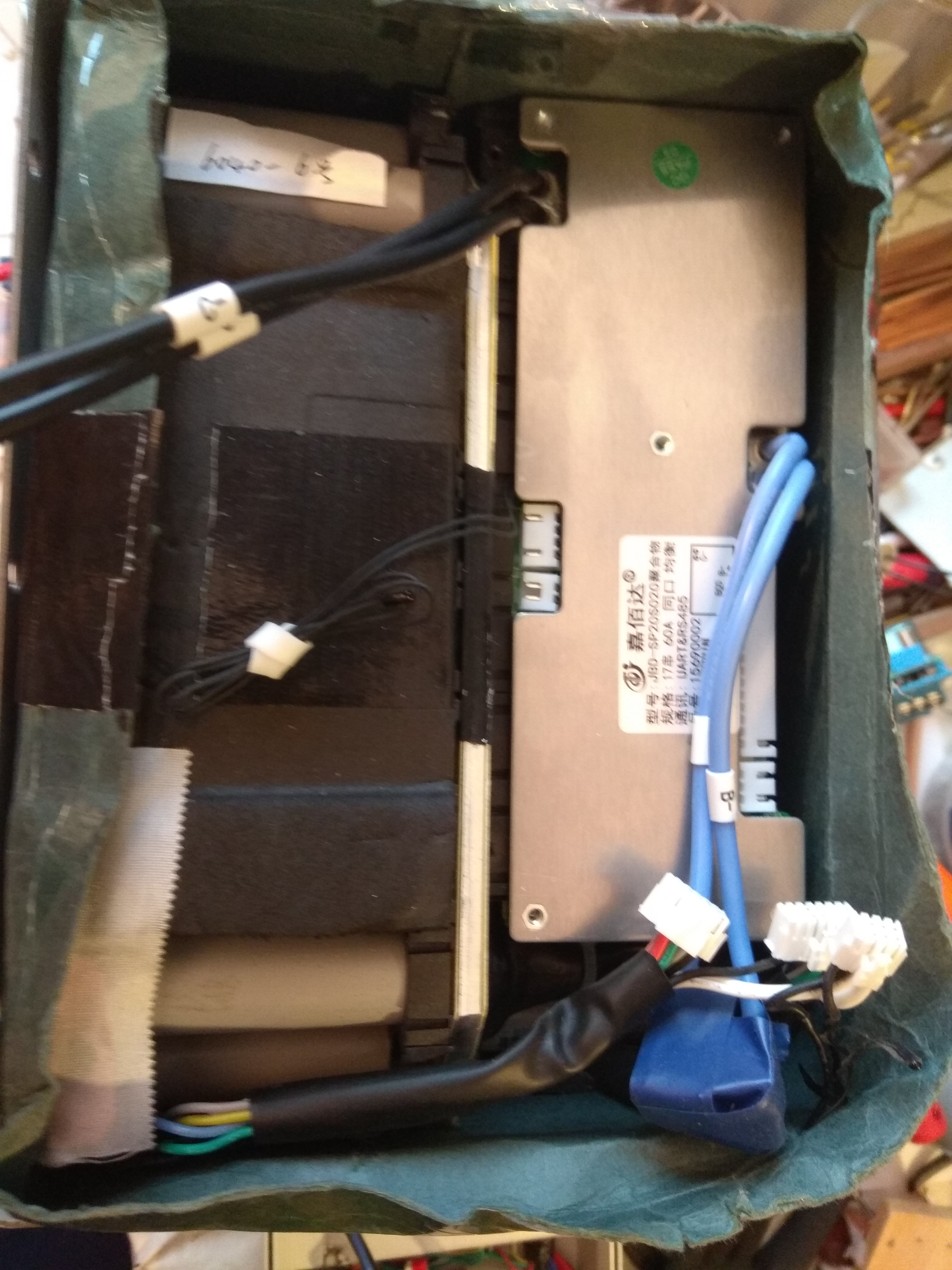 Soderla, neues BMS ist eingebaut. Ich habe von dem alten defekten BMS die zweireihigen Stecker von der Platine abgeloetet und mir quasi einen Adapter gebaut. Das Abloeten der Stecker von der Platine war ein elendiges Gefummel, aber dafuer kann ich theoretisch wieder das alte BMS einbauen (beim Abloeten habe ich zwar eines der beiden beschaedigt, aber ich habe ja zwei alte defekte).