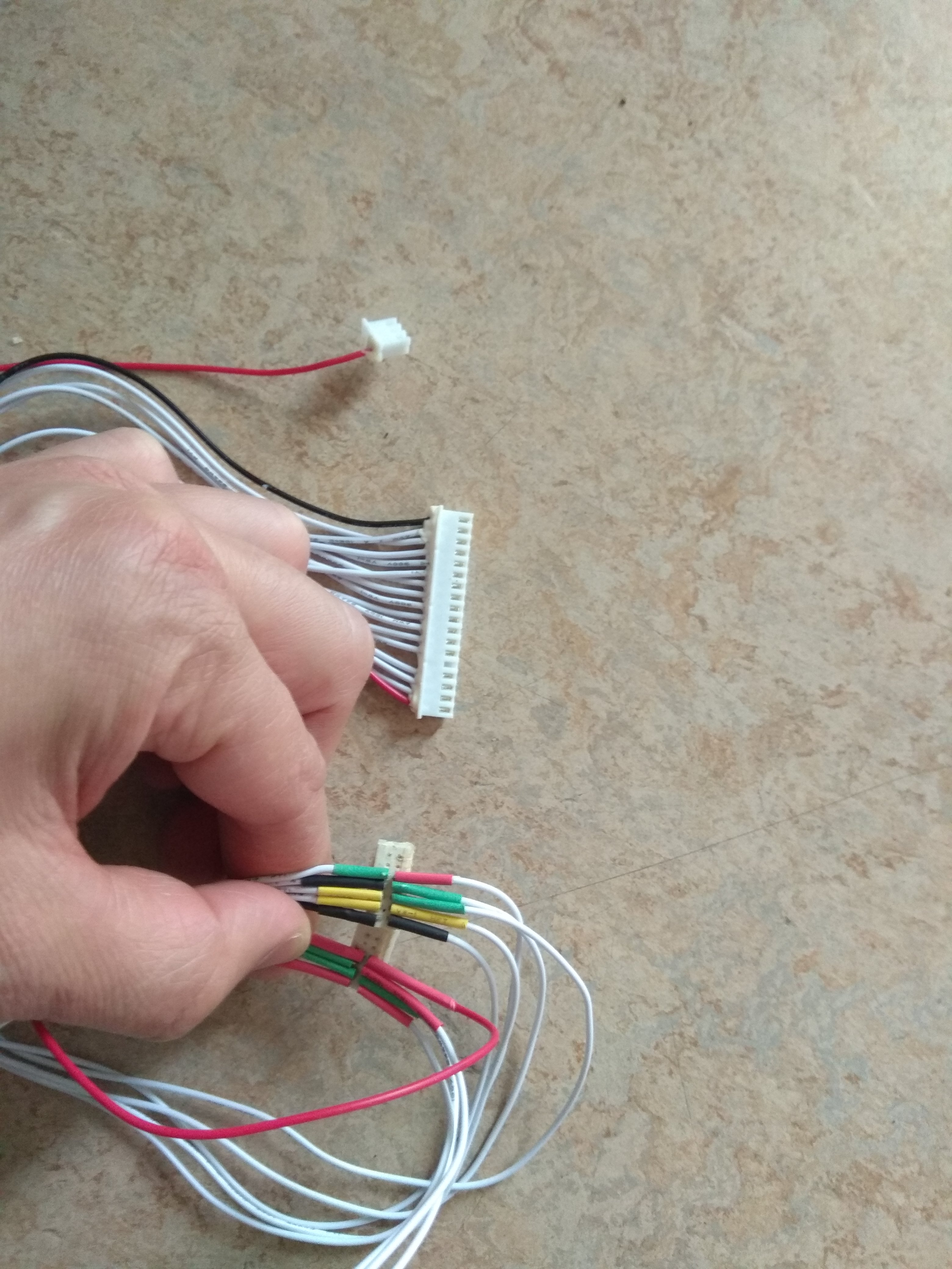 - zweireihiger Stecker vom alten BMS abgeloetet, dann PINs anders herum reingesteckt