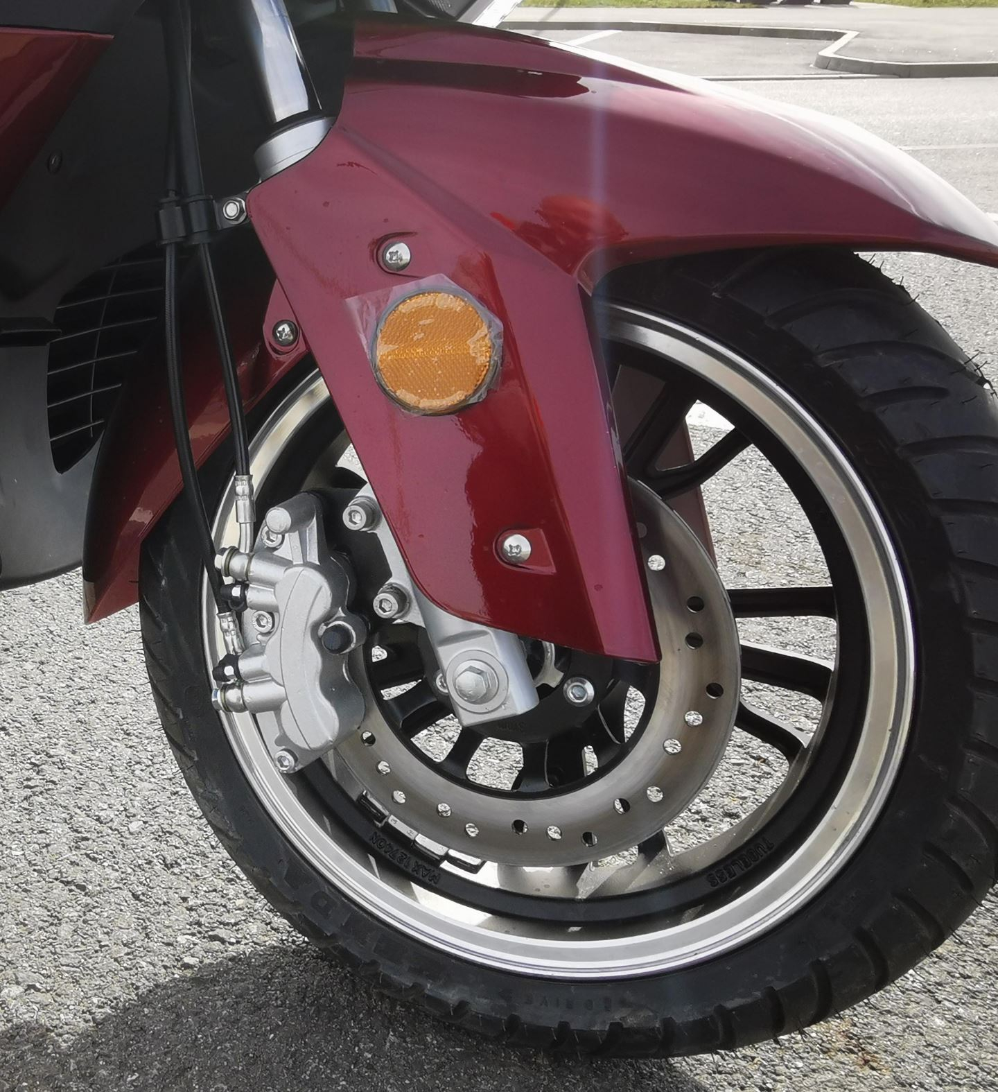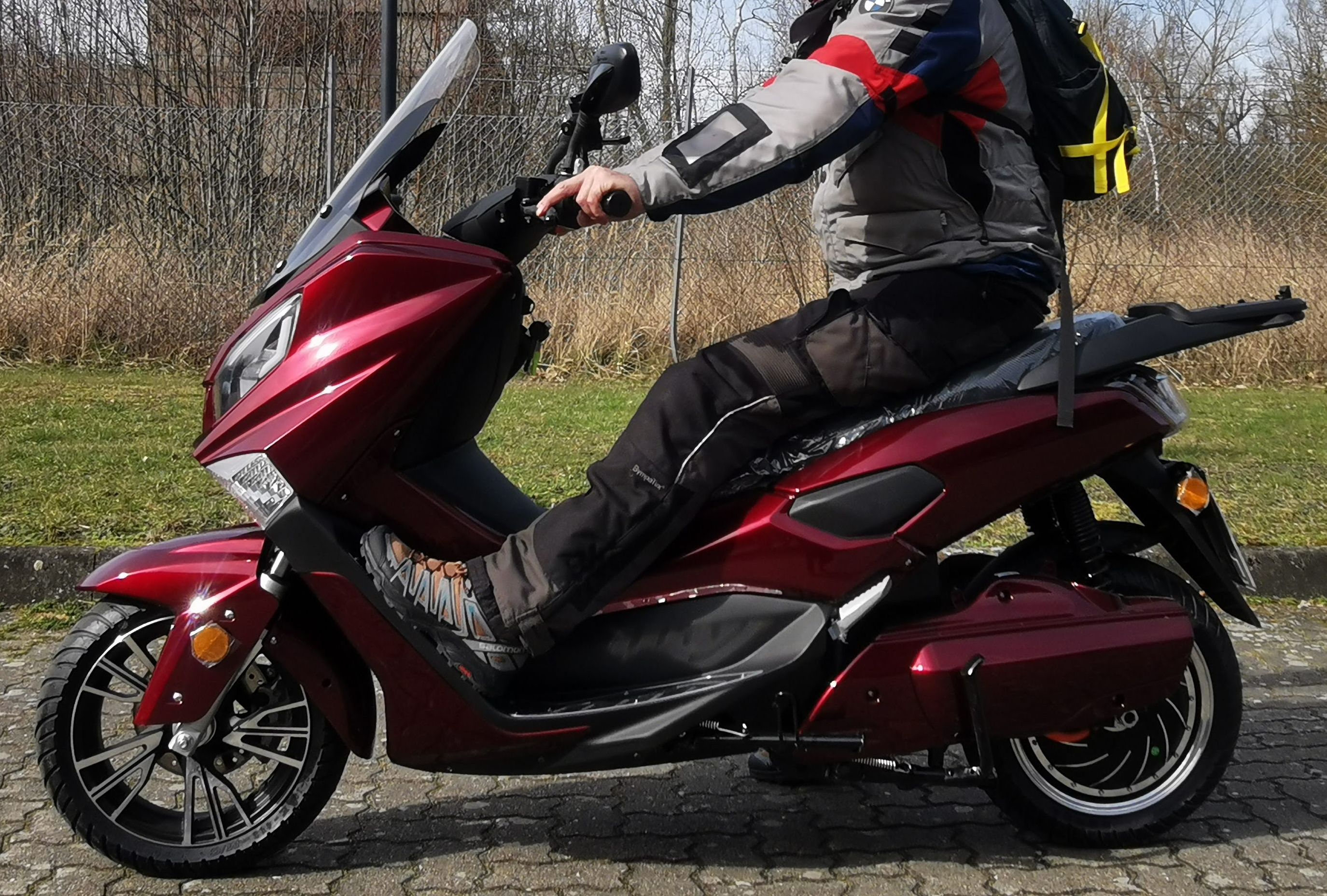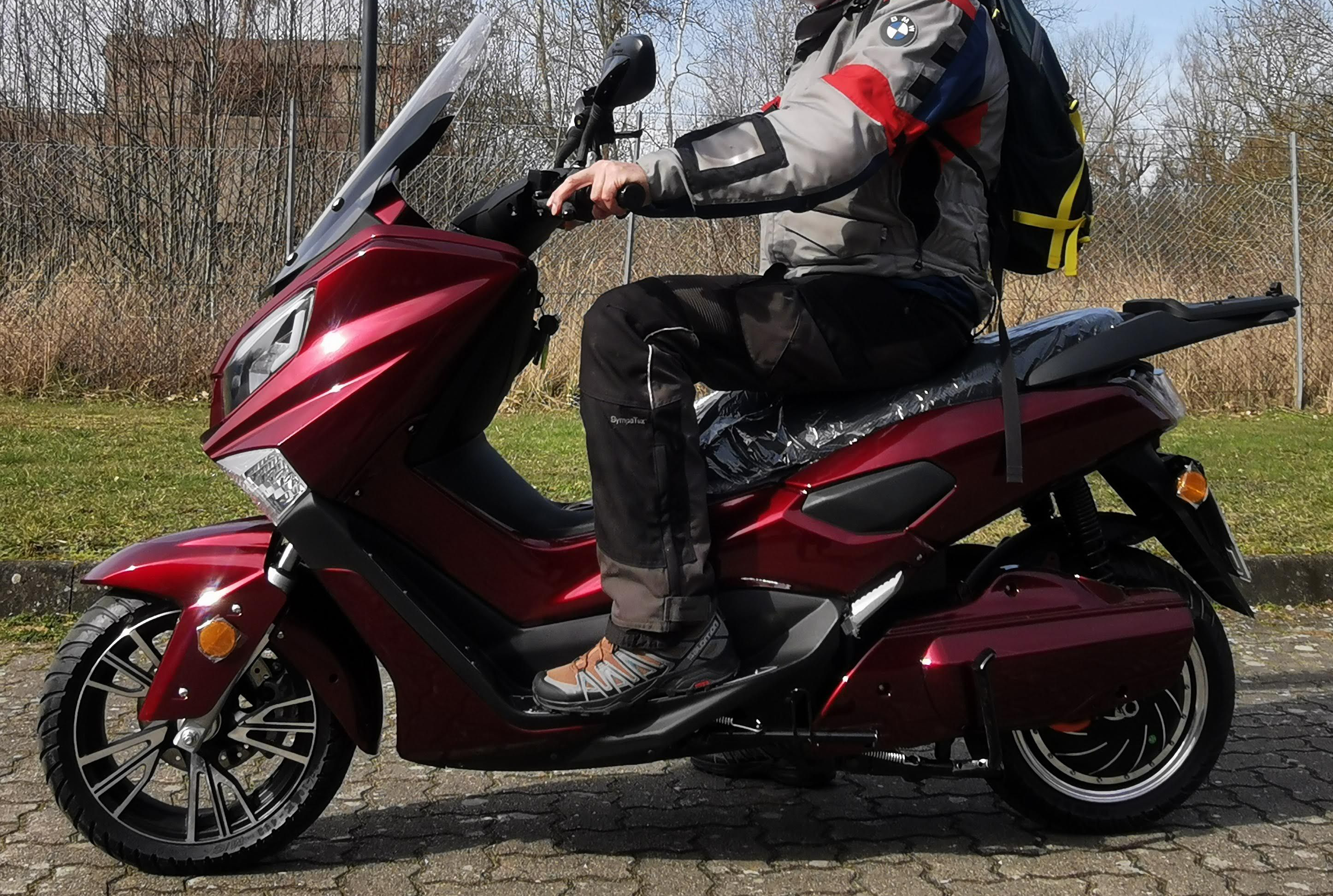 Natürlich kein ABS und ASR, nur CBS. Gut, dass der (einstellbare) Controller so justiert wurde, dass nicht ab Null, sondern erst ab 5-10 km/h das volle Drehmoment wirkt, je nach Fahrstufe. Bis an die Grenzen habe ich das Kurvenverhalten nicht getestet, weil neues Mopped also auch neue Reifen, sowie meine (noch) Roller Unerfahrenheit. Bis hierhin habe ich aber nichts zu bemängeln. Auch das Einlenkverhalten ist aus meiner Sicht ok für einen Roller. Lenkkopflager passt soweit.