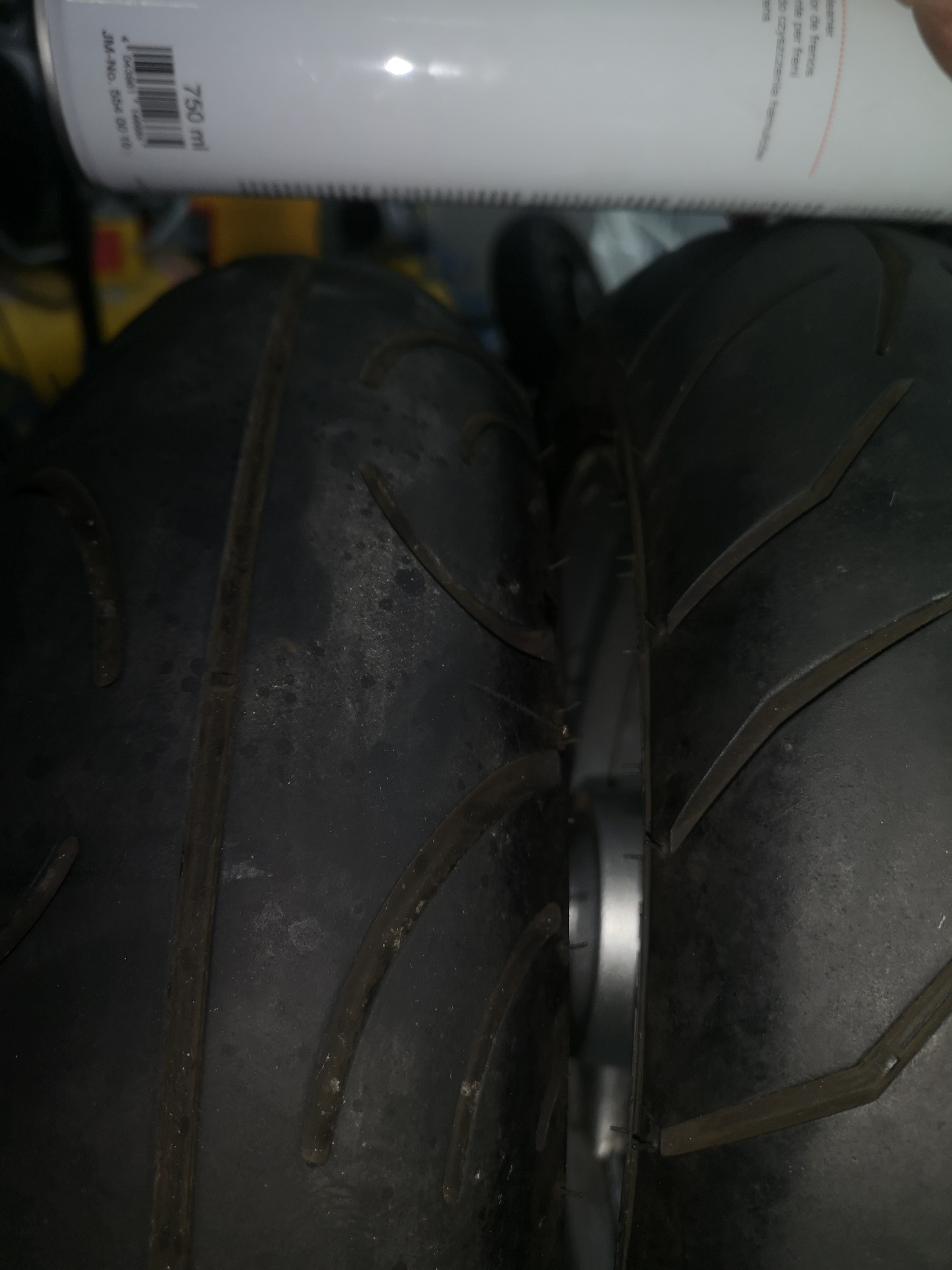 Bei den beiden Jupis, die ich zu einem verbaut habe, waren beide Reifengrößen vertreten, und zwar mit Heidenau-Straßenreifen K61 bzw. K81, die recht ähnlich sind.