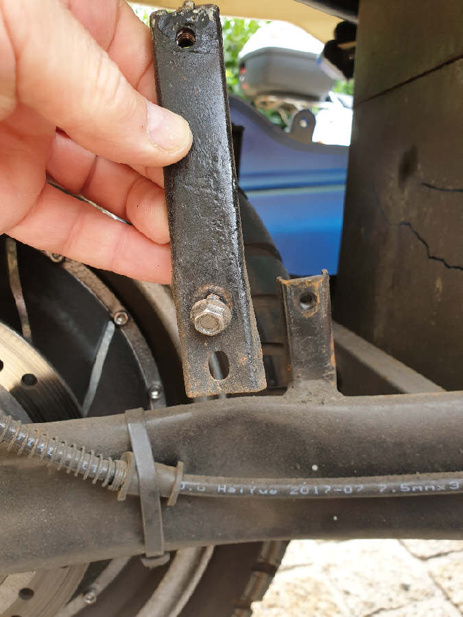 Die Schwingenverkleidung ist inzwischen repariert und jetzt ist auch klar warum die Halter gebrochen sind. Die Halter der Schwingenverkleidung waren dermaßen schief montiert dass die Hinterradabdeckung total verspannt war. Das kann man bei der Werksmontage gar nicht übersehen - unmöglich.