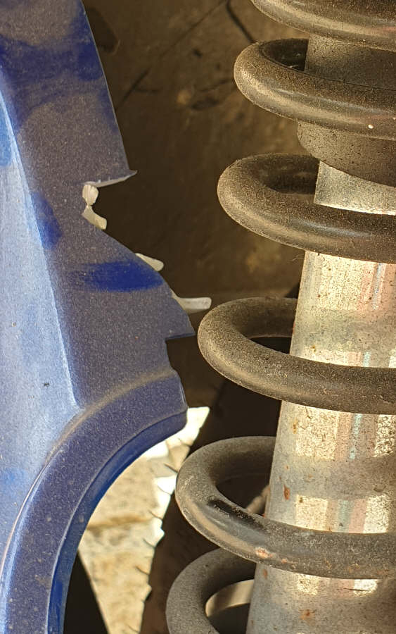 Heute auf der Autobahn sind beide Verkleidungsteile im Bereich der Verschraubung gebrochen, so dass die Hinterradabdeckung direkt auf den Reifen fiel. Zum Glück hat sich nichts verkeilt.