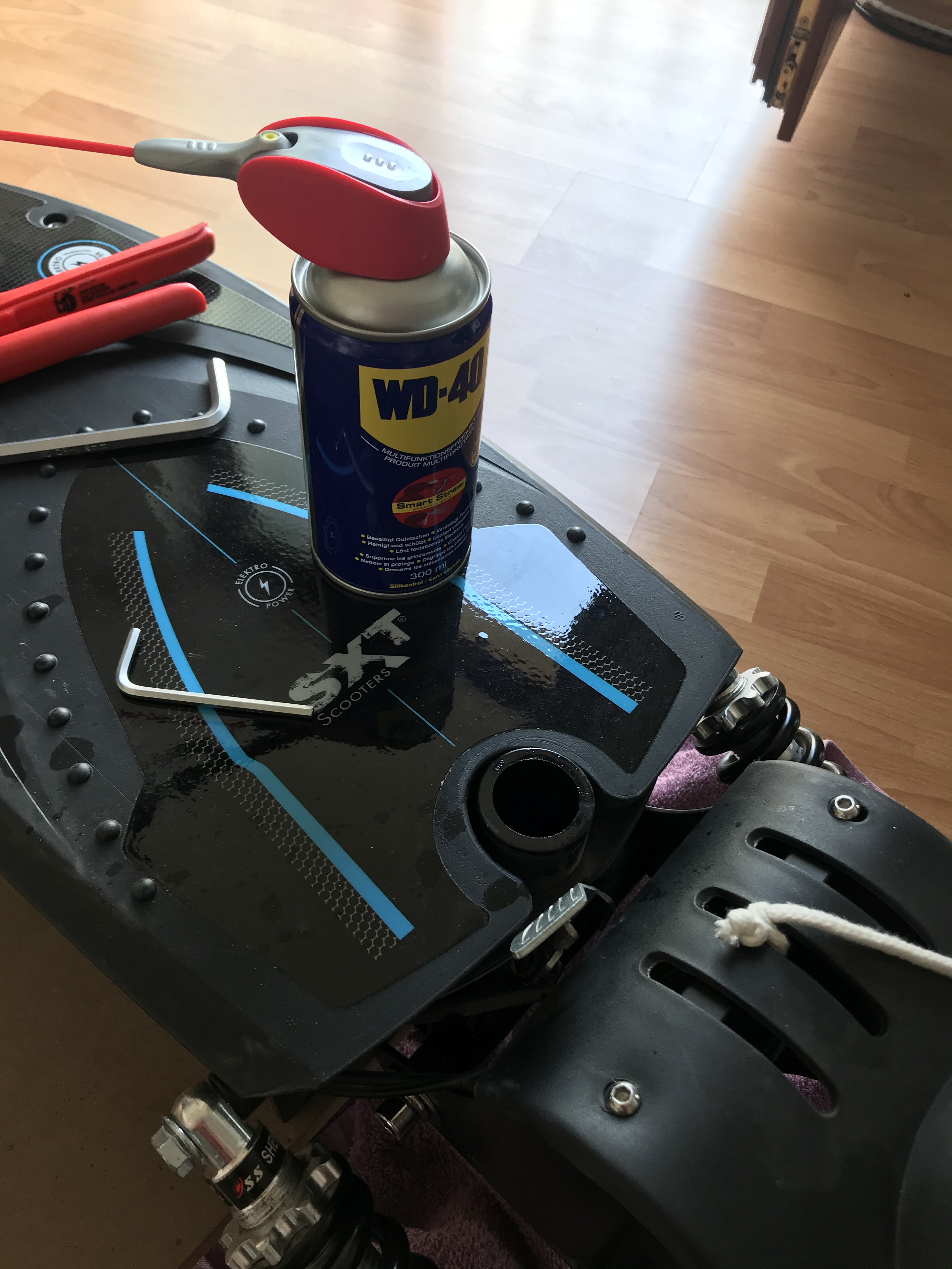 Die Sattelstange meine Scooters lässt sich nicht mehr herausnehmen bzw. bewegen. Sie scheint sich „festgefressen“ zu haben.