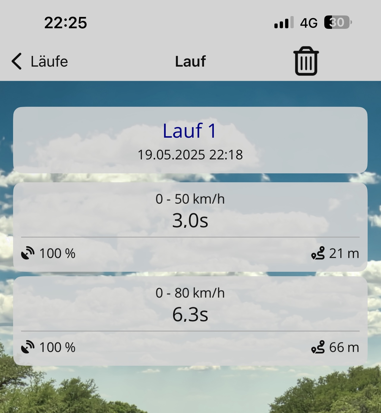 Die Ergebnisse sind nicht super akkurat aber vom Gefühl kommt das hin. Der SoC war 96-97%. Ab 100% SoC ist der Anschub echt enorm. Jedes Prozent weniger Akku kostet direkt Leistung.