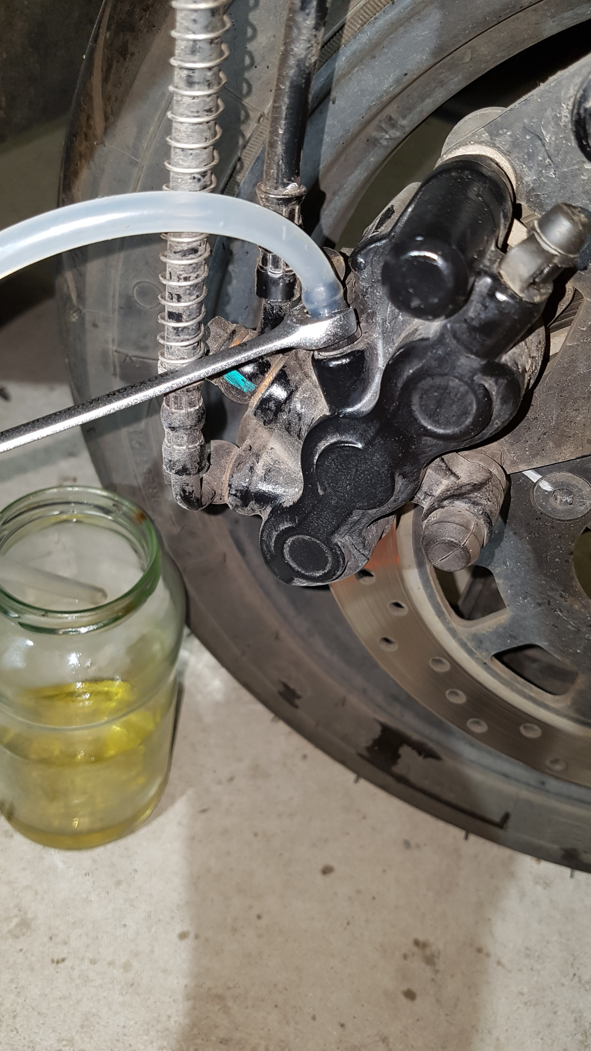 Heute war Bremsflüssigkeitswechsel angesagt. Es sind zwar noch keine 2 Jahre rum aber beim hinteren wechsel der Bremsbeläge stellte ich fest das die Bremsflüssigkeit nicht mehr so das dolle war. Und deshalb war es heute soweit gewesen. Gute Fahrt