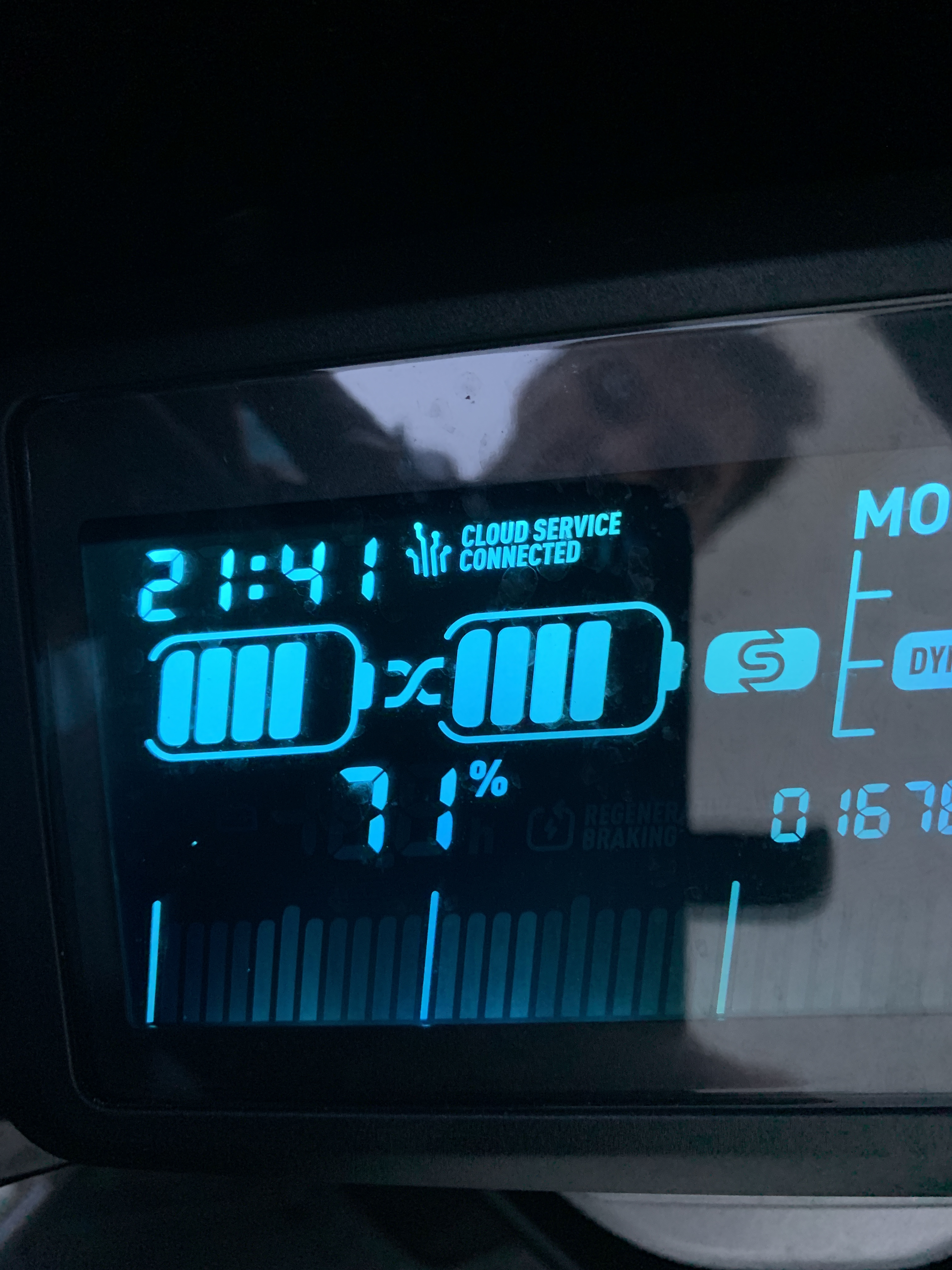 7 Zyklen bisher und knapp 500km gefahren. Auch stieg bei mir endlich die Reichweite auf ca 90km.