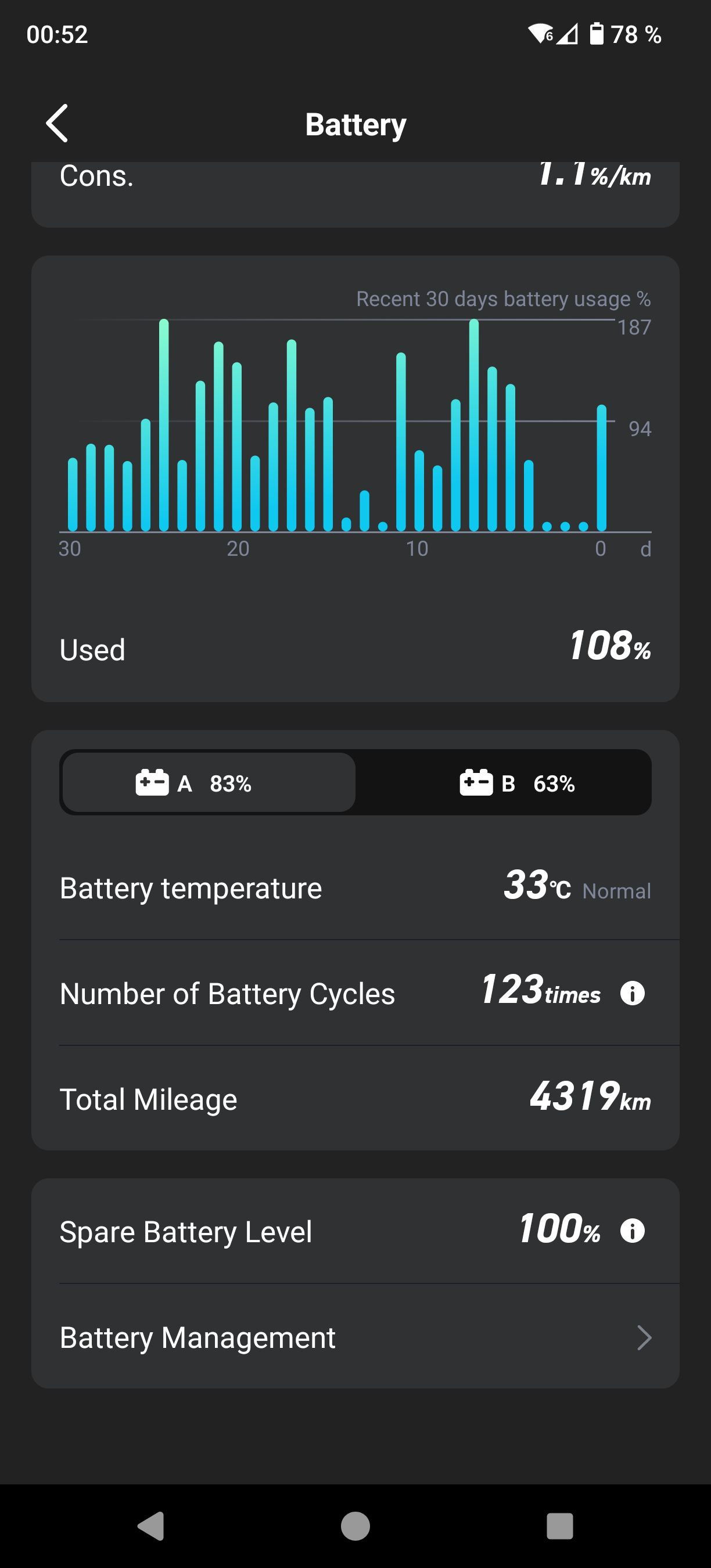 - 04.319km | NIU MQi GT EVO __ | EZ 03/2022 | 1. Akku | 123 Zyklen | @ zock3r1608 (500km: 46 Zyklen)