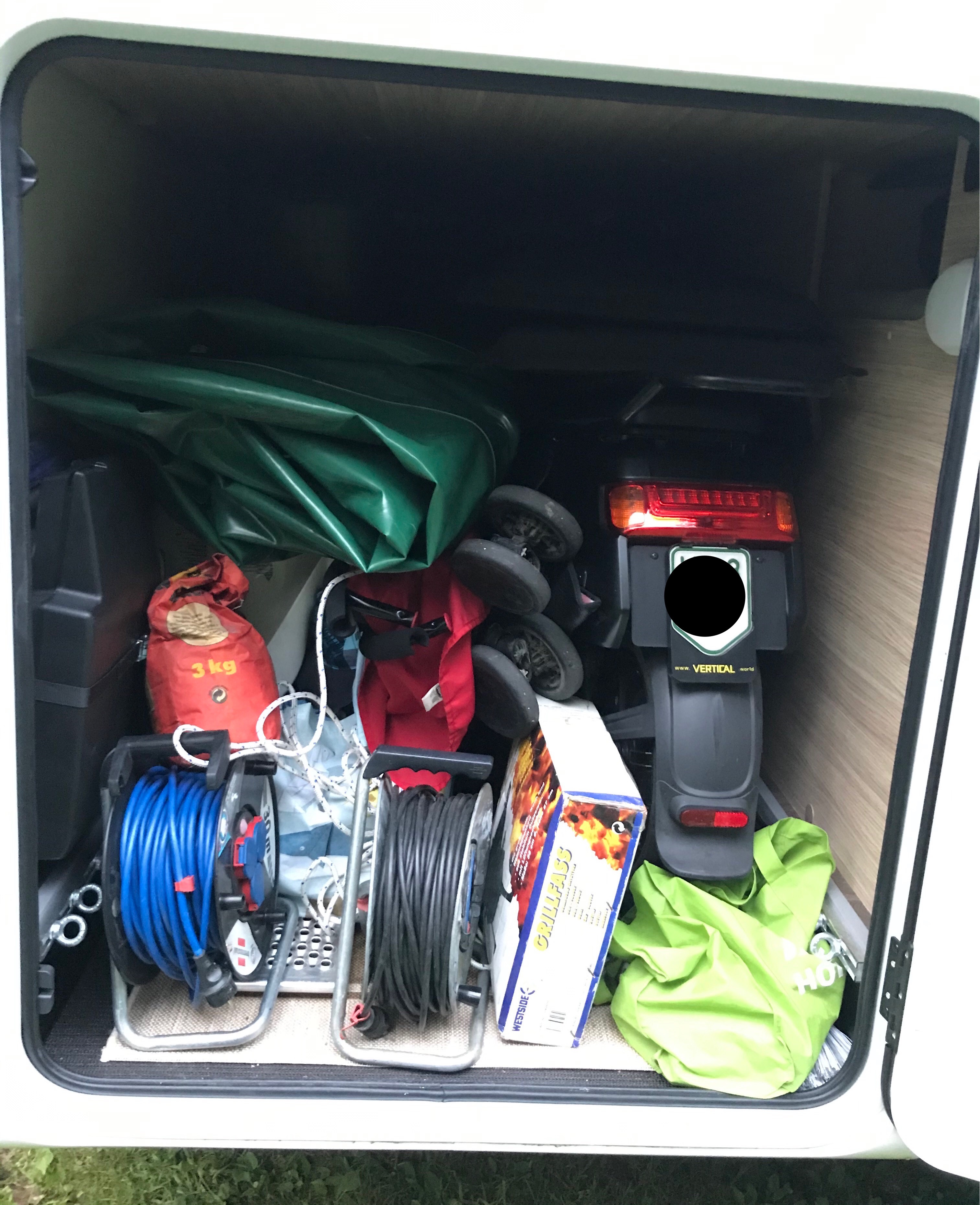 Vordergrund NIU Topcase, Hintergrund KYMCO CARRY fertig zum Abtransport Grünschnitt,alles kann der NIU nicht ersetzen