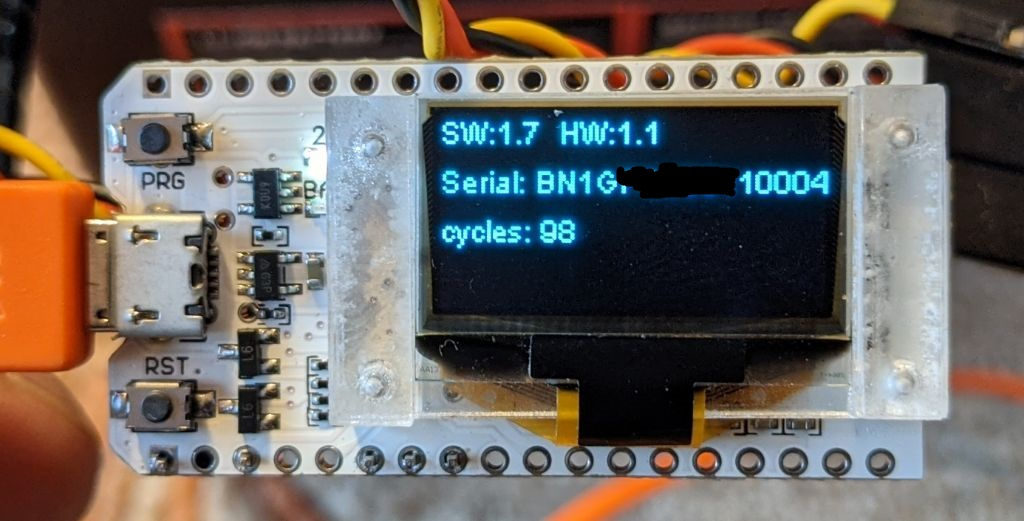3. Page mit Software Version, Hardware Version, Batterie Serialnumber und Lade Zklen