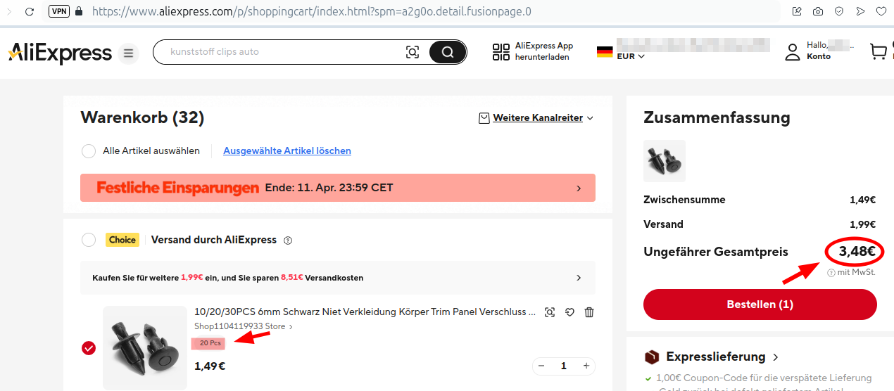Ob du da gerade billiger wegkommst, wie wenn du über Ali gleich 20 Stück bestellst?