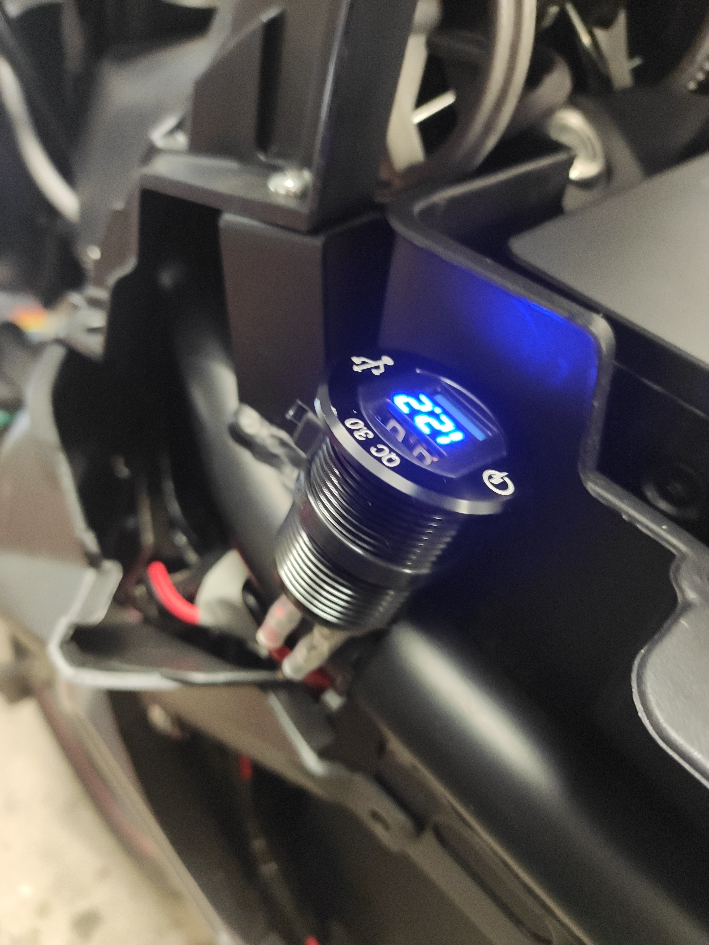 Funktioniert alles tiptop. 12V war uns wichtig, damit nur "Zündungsplus" anliegt. Bei ausgeschalteter Maschine/Licht aus ist auch die Dose aus und zieht somit exakt Null, wenn das Mopped nicht in Betrieb ist. Die verwendete USB Steckdose ist mit knapp 13€ nicht die allerbilligste, hat aber eben QC3 und vor allem auch ein überraschend wertiges Alugehäuse, was die Wärme besser ableiten kann als bei den 7-8€-Plastikteilen (die aber auch funktionieren). Voltmeter ... eigentlich uninteressant aber ein nettes Gimmick verglichen mit noch nutzloserer Beleuchtung.