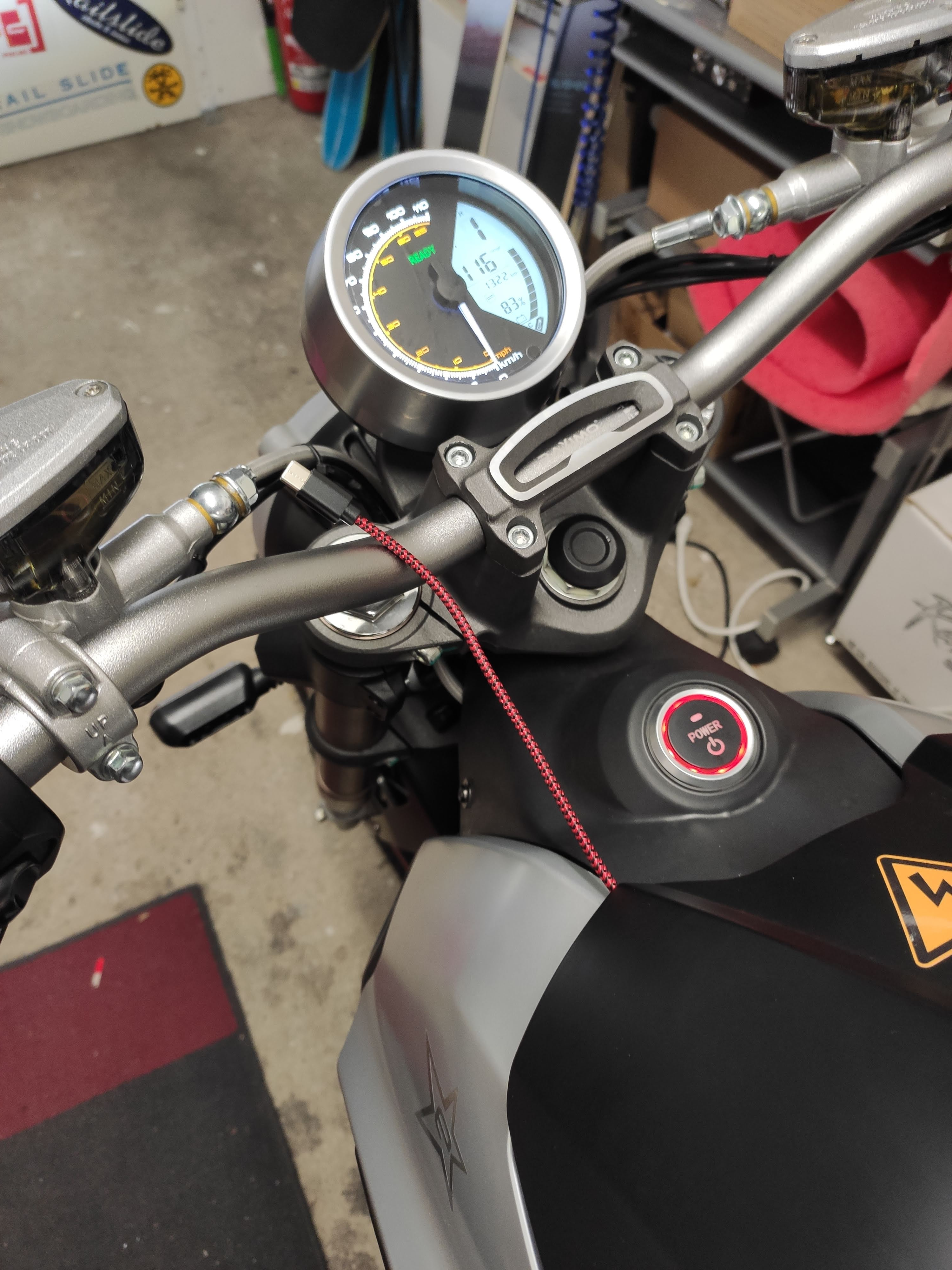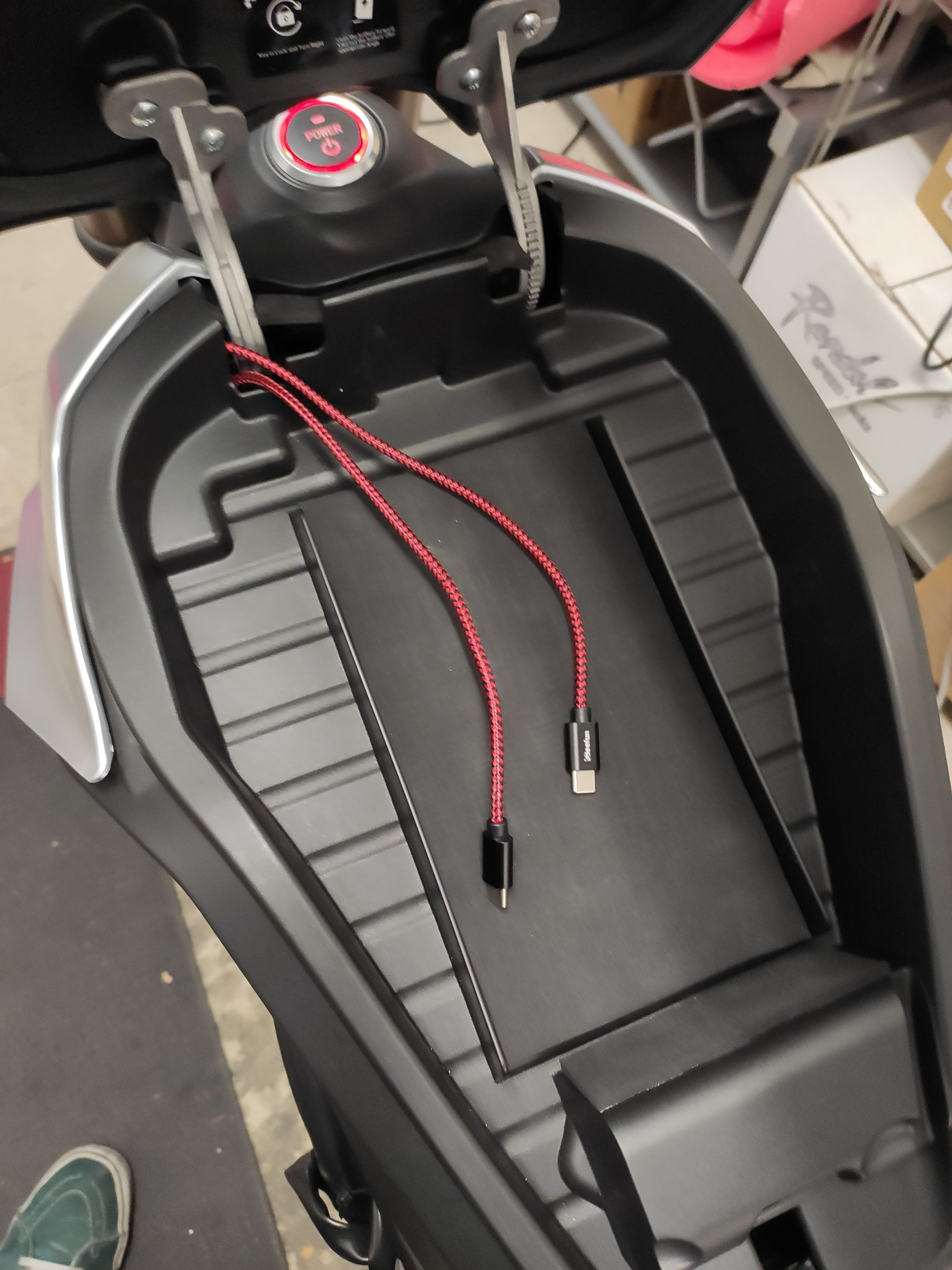 Für eine Handyhalterung in Vorbaunähe wäre das auch noch lang genug. Für eine Halterung an der linken Spiegelhalterung (wir hatten vorher eine NIU Halterung dran) müsste man aber ein längeres Kabel wählen.