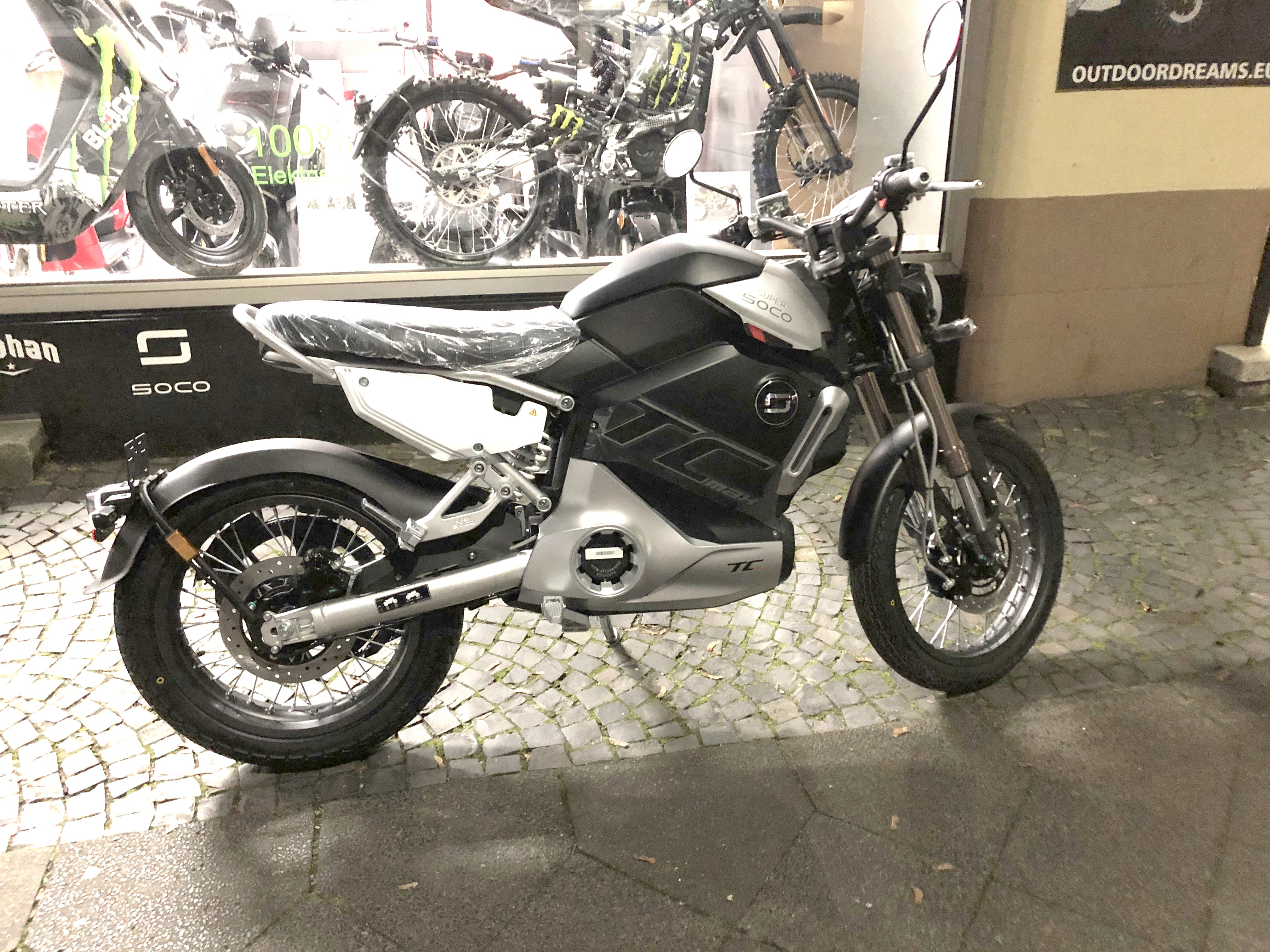 Die Super Soco TCmax ist ein kleines Motorrad mit einem erstaunlichen Spitzendrehmoment von 170Nm (peak), 5kW Spitzenleistung und einer max. Geschwindigkeit von 90 km/h. Die Gesamtkapazität beinhaltet 3,24 kWh (72V 45 Ah), der Akku ist in 8-9 Stunden komplett aufgeladen. Die Reichweite liegt laut Hersteller bei 110 km, real wohl eher bei 80 km. Preis: 5.000,- Euro
