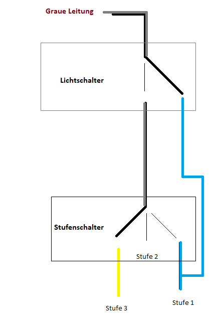 Lösung 1: Die graue Leitung über den Lichtschalter verlegen: