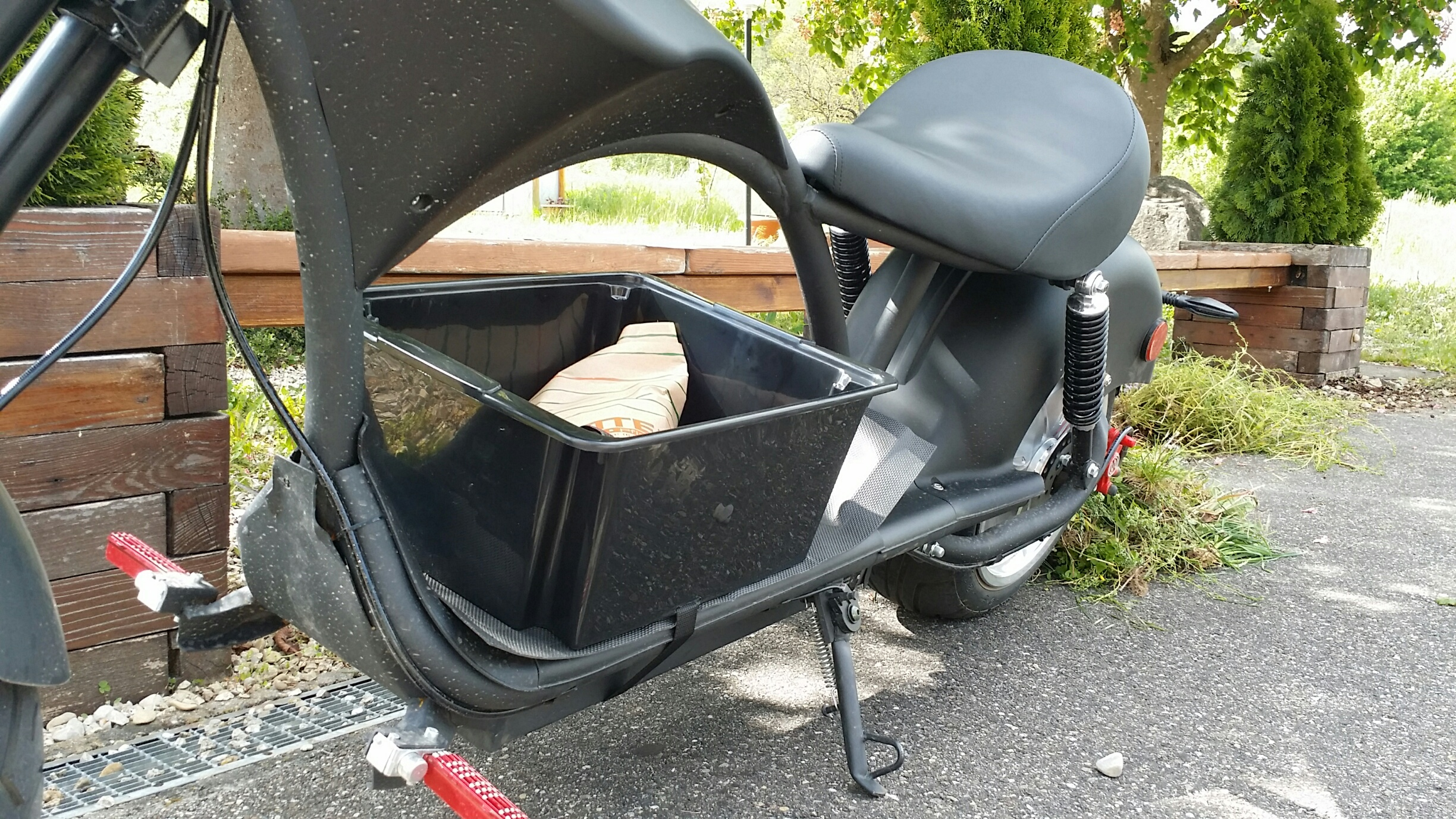 Umbauten/ Änderungen, Weichere Stoßdämpfer, Colometer ein Dank an Harry!! Eine Schwarze Box zum Einkaufen, wird bei Bedarf auf´s Trittbrett geschnallt.