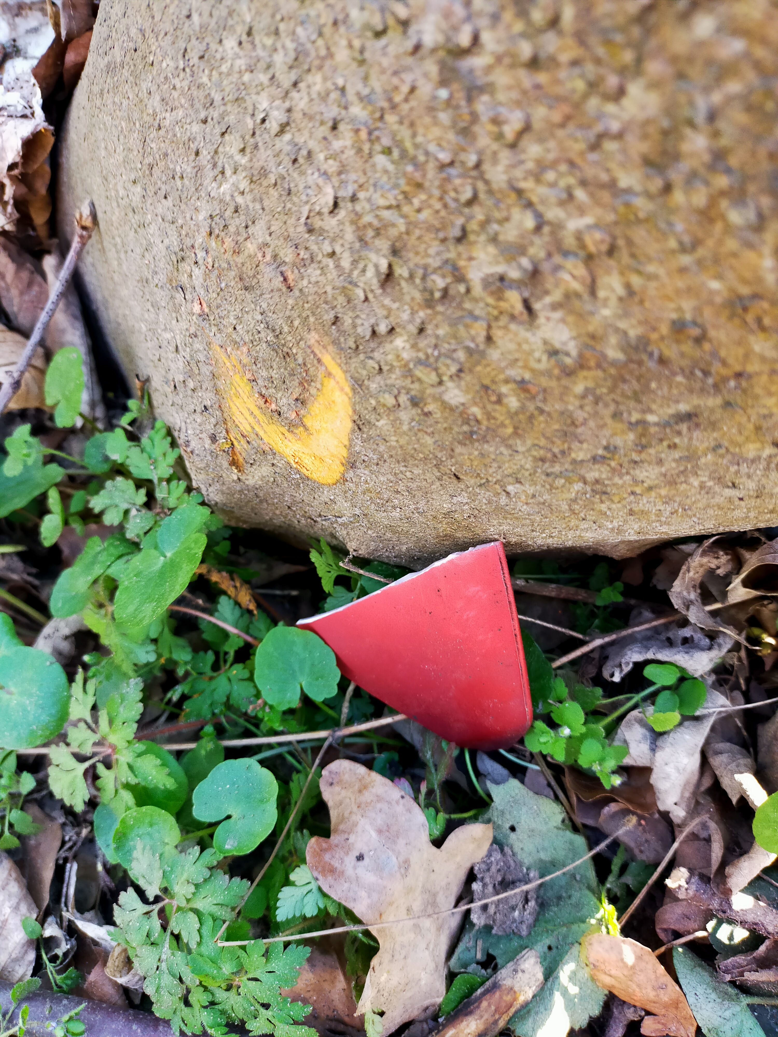 Der Ast, den ich neben die Straße legte. So längs lag er auf der Straße und spießte den Roller auf.