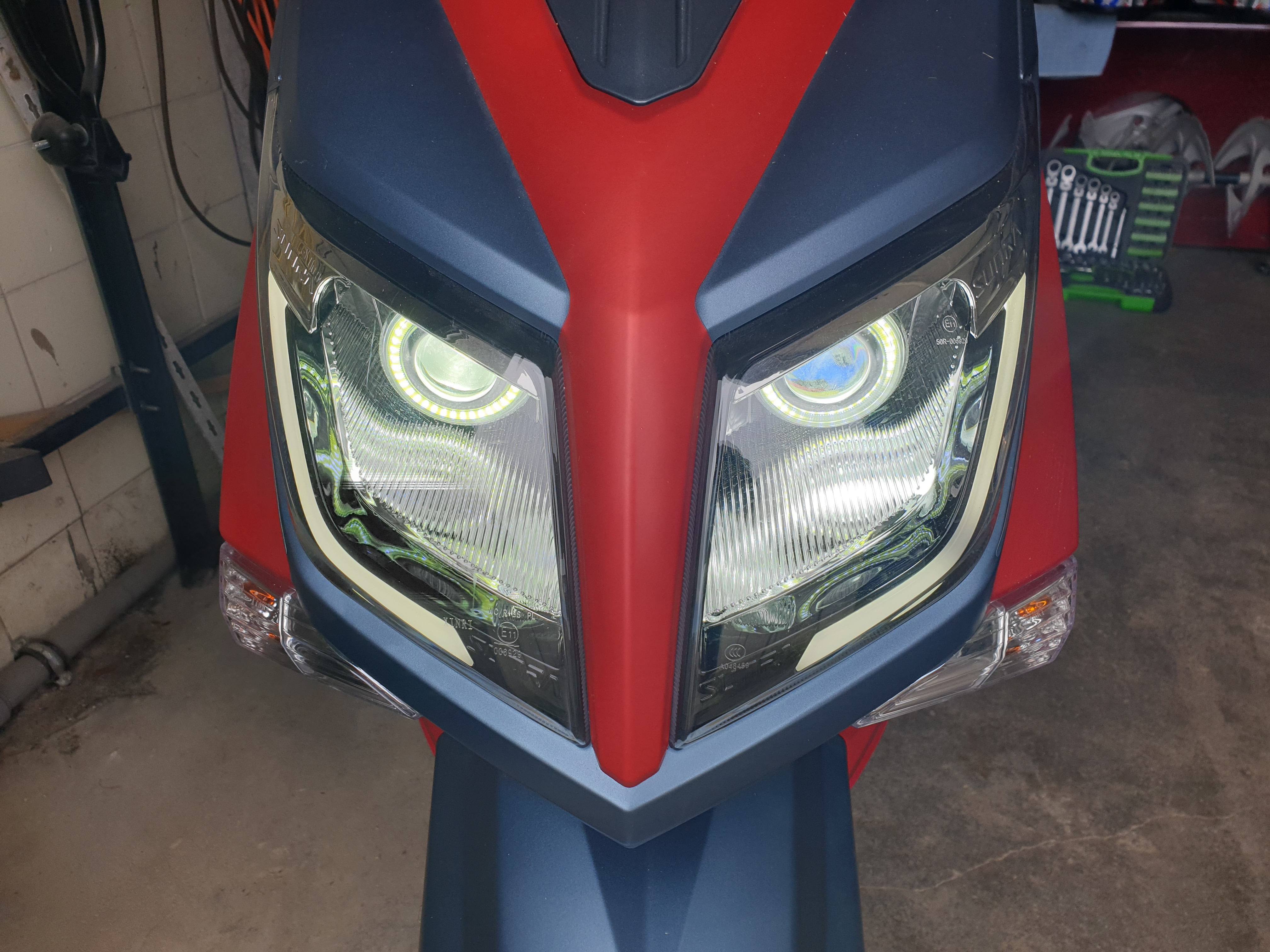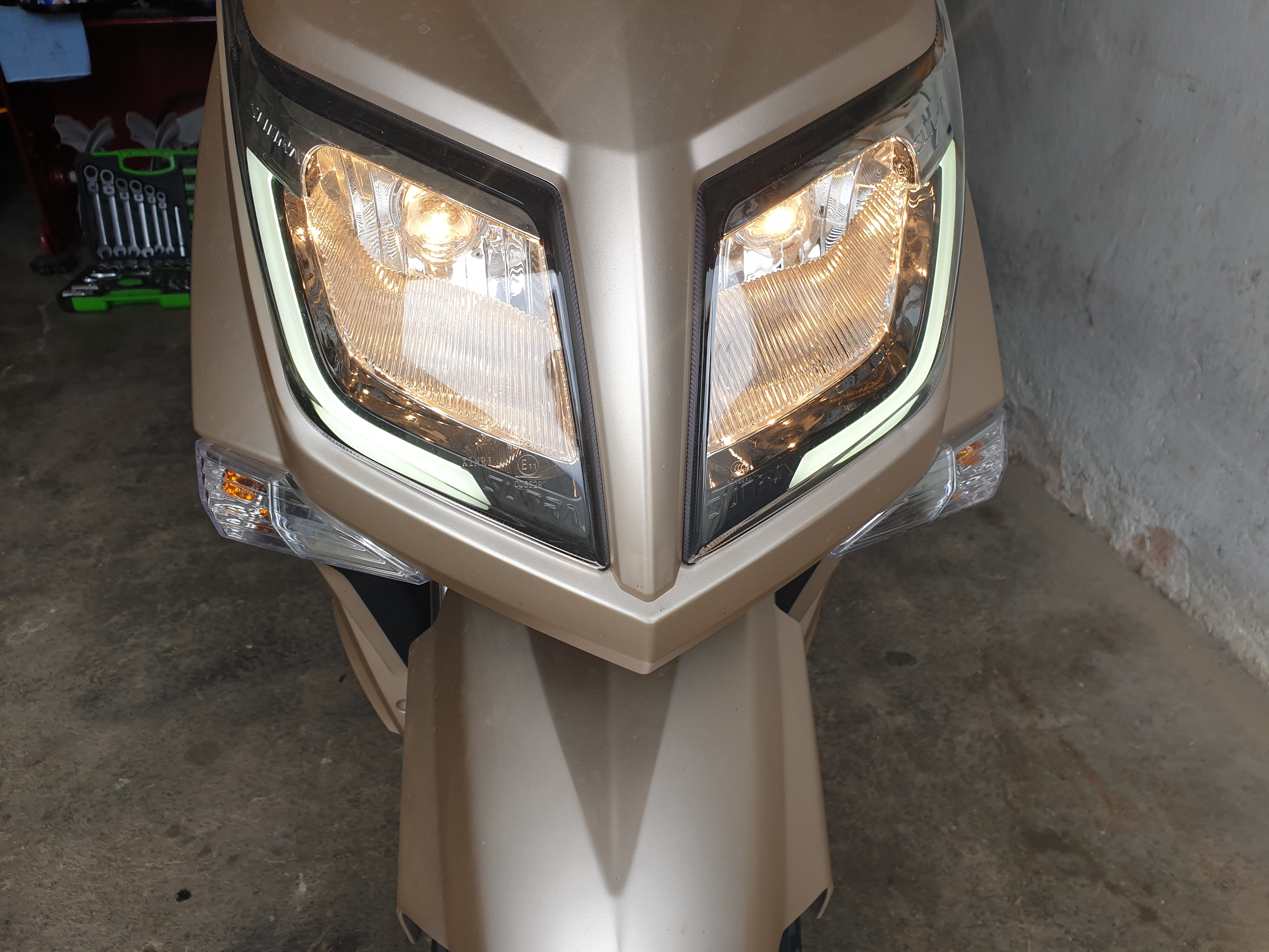 Das Auspacken ging jetzt ohne Risiko auf Beschädigungen und siehe da, der Roller in Farbe antrazit und rot war sauber und was mich besonders verwundert ist das Abblendlicht in LED oder Halogen, siehe Bilder.