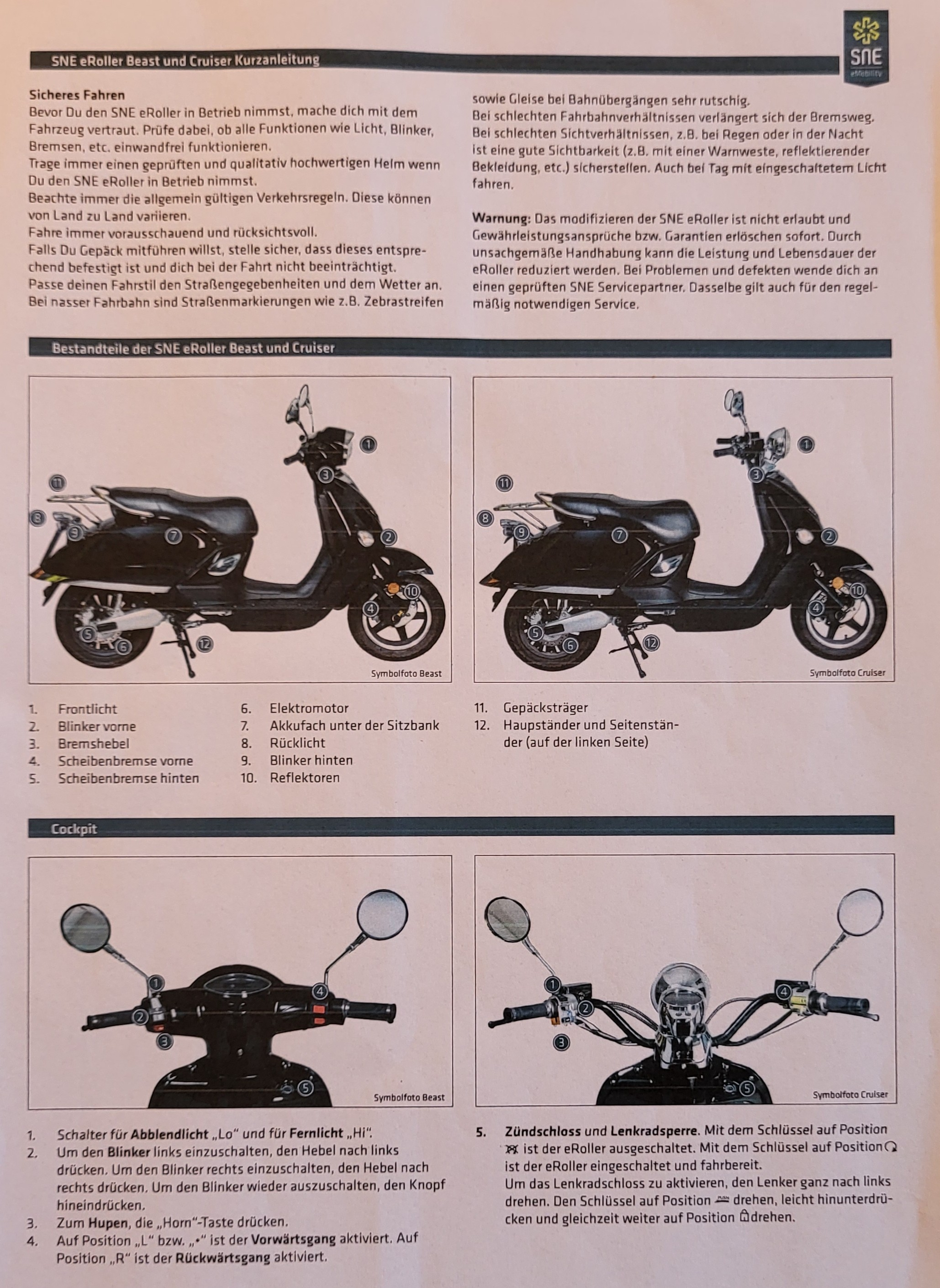 Was etwas komisch an dem SNE ist, dass er sobald man bremst, ein Piepen ertönt und die "Motorkontrolllampe" leuchtet. Laut Handbuch soll das so, den Sinn dahinter muss mal wohl nicht verstehen.