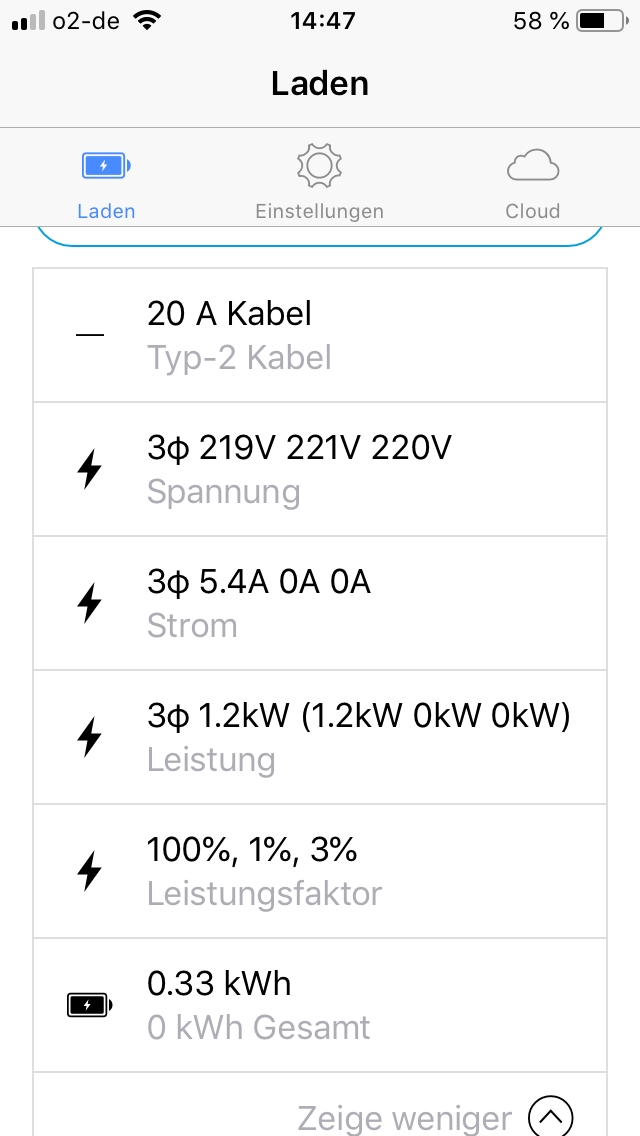 Du hast aber sehr schlechte Spannungswerte auf der Box.MEroller hat geschrieben: ↑Sa 6. Apr 2019, 14:44Dank neuer 22kW Typ 2 - 32A CEE go-e Ladekiste in der Garage (Vorbereitung auf die Vollelektrische Mobilitätszukunft bei uns Zuhause) kann ich vermelden, dass das von mir verlinkte Ladekabel Typ 2 - Schuko tatsächlich eine 20A Kodierung aufweist