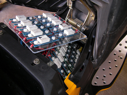 Eure Verkabelung gefällt mir rein gar nicht. Bei mir ist die Sicherung recht nahe der letzten Batterie verbaut, und erst an der anderen Seite des Sicherungsautomaten sind Controller als auch Ladegerät angeschlossen. Das halte ich für sicherer - man stelle sich mal vor, das Zuleitungskabel vom Ladegerät zum Roller hätte eine Quetschung / ein Kurzschluß.