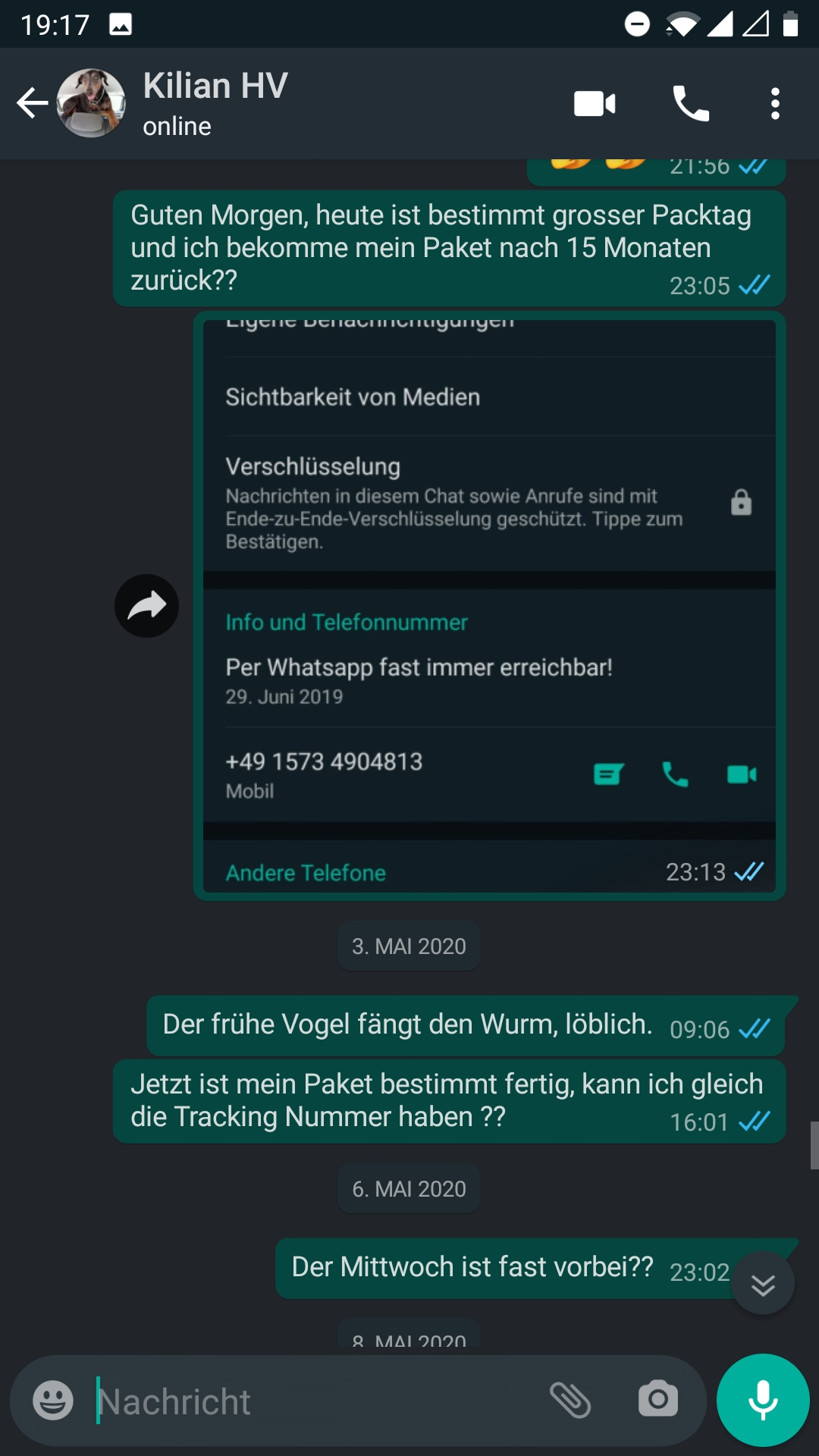 Das Jahr neigt sich dem Ende zu, ich habe in den letzten 6 Wochen mit 68 Anrufen, 140 Mails und 4m WhatsApp Monolog versucht mein Teil zurück zu bekommen. War wohl aber nicht hartnäckig genug...