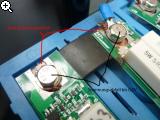 Was mir auch nicht so gefällt ist der Schmorpunkt auf dem rechten Balancer, links vom fetten Leistungswiderstand. Das sieht nach durchschmorter Leiterbahn aus.