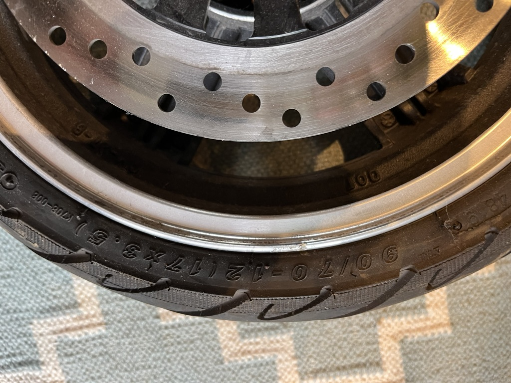 gebrauchtes Vorderrad von Falcon Futura (20210) incl. Reifen 90/70-12, Bremsscheibe (ca. 5000 km gelaufen) abzugeben. Bitte Preisangebot.