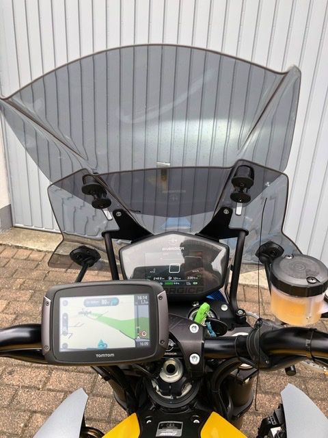 Last not least: Du hattest doch auch das Energica-Windschild gehabt. Blöde Frage vielleicht, aber auf dem Bild aus Fahrerpersepktive sieht es so aus, als hättest du die Originale Verstrebung auch beim Puig mit genutzt. Oder ist die ungenutzt einfach drunter geblieben?