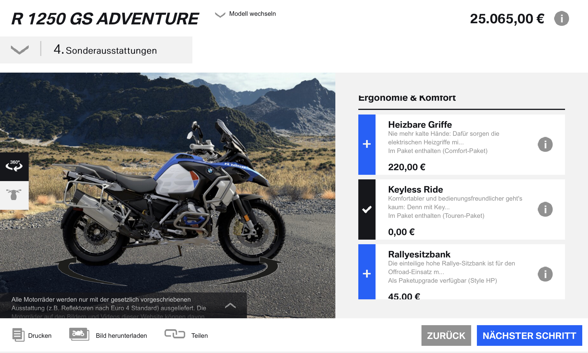 Na ja, eine schnöde GS bekommt man leicht auf über 25.000, und das ohne Heizgriffe oder Koffer.
