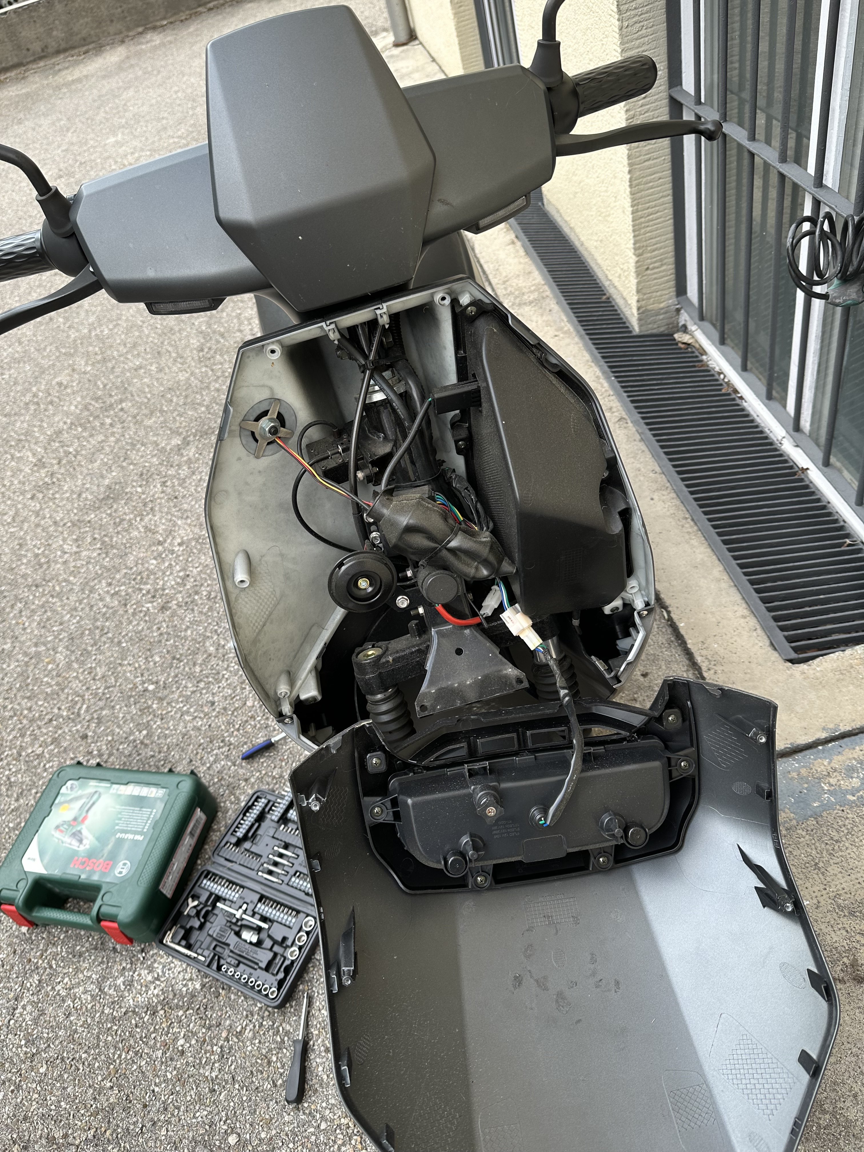 Die Diebstahlwarnanlage ist allerdings oft eher hinten im Fahrzeug installiert, in der Nähe zum Motor-Controller, den sie ja auch lahmlegen können soll. Ob der hier im Unterbau oder unter dem Sitz /den Akkus zu finden ist, kann ich aber nicht sagen.