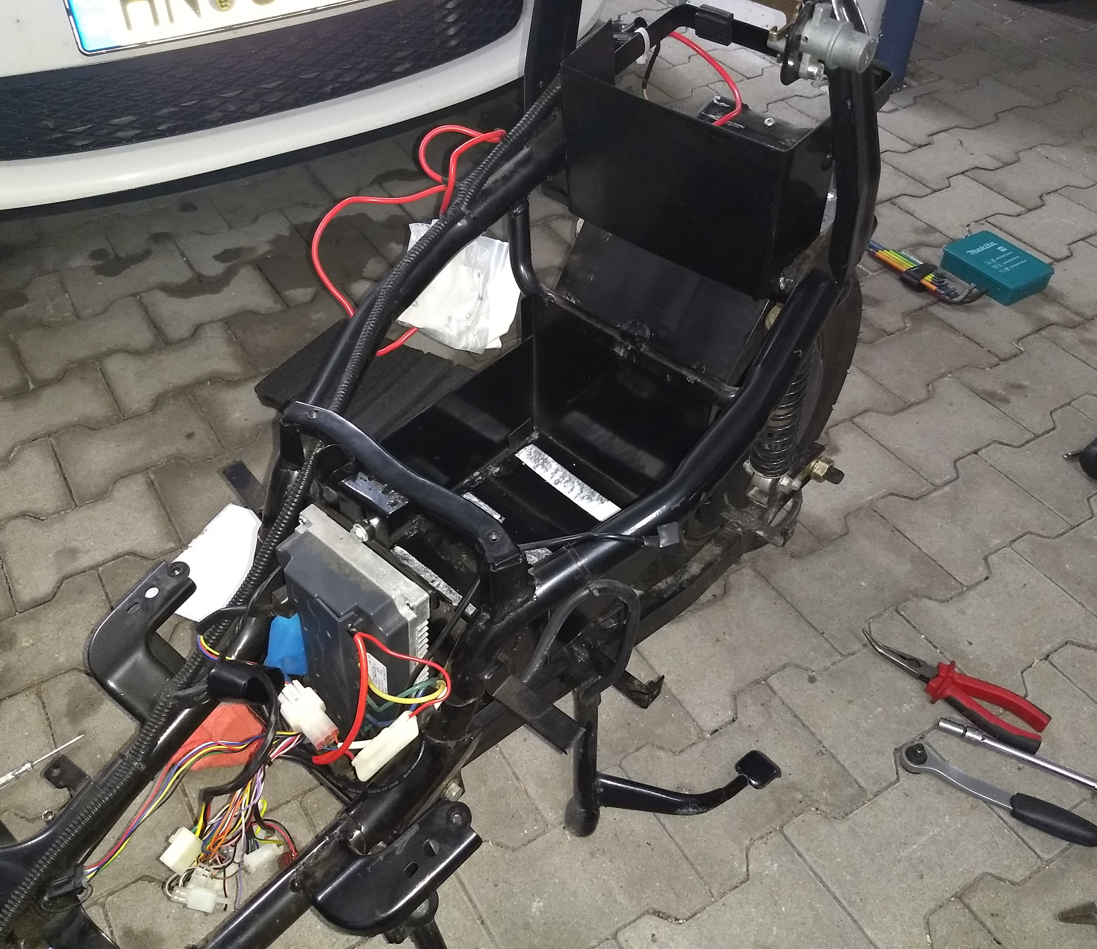 Danke, das ist eine Überlegung wert :). Der hintere Teil der Akkuwanne ist noch als Schutz vorhanden, da habe ich nix verändern müssen. Seitlich kann Feuchtigkeit dran kommen.
