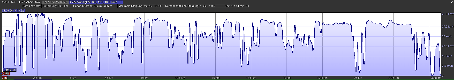 Das spräche dann m.M.n. für +/- 40km/ h lt. GPS im Bereich des km 22.5. Sehr viel mehr können Niu und Konsorten da auch nicht.