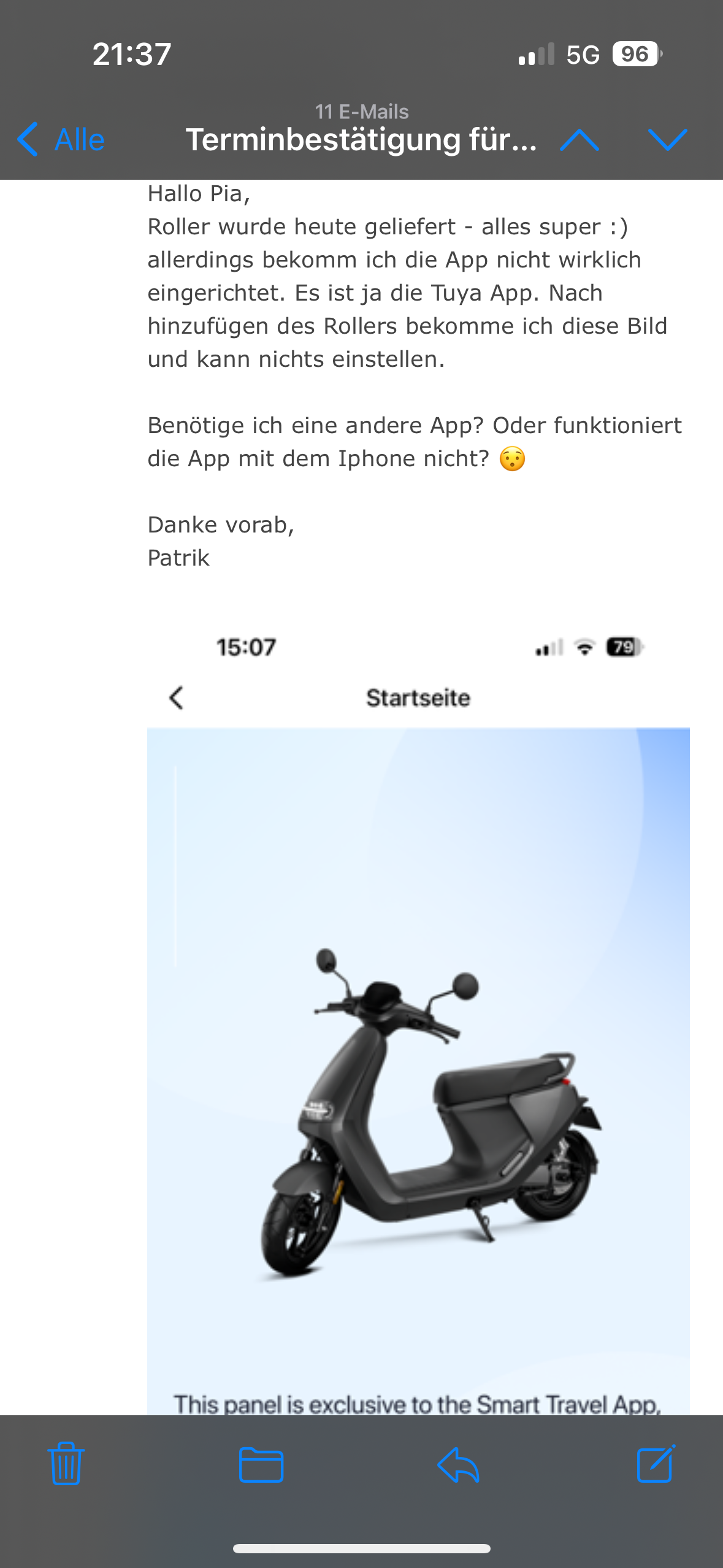 Würde bei mir die App und Keyless etc. nicht funktionieren, würde ich vom Kauf zurück treten und den Yadea Fierider kaufen.