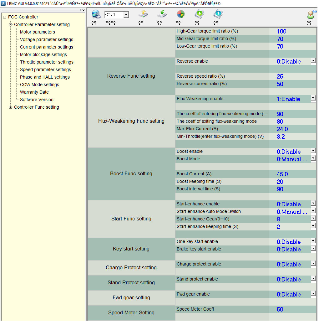 Ich habe speed limit disabeld, den max. Strom auf 140A eingestellt, den Anfahrstrom auf 18A, den Durchschnittstrom auf 44A.