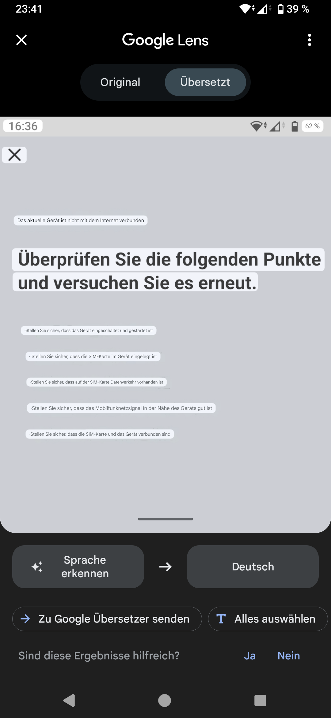 Sobald ich den QR-Code einscanne, kommt eine Meldung auf Chinesisch: