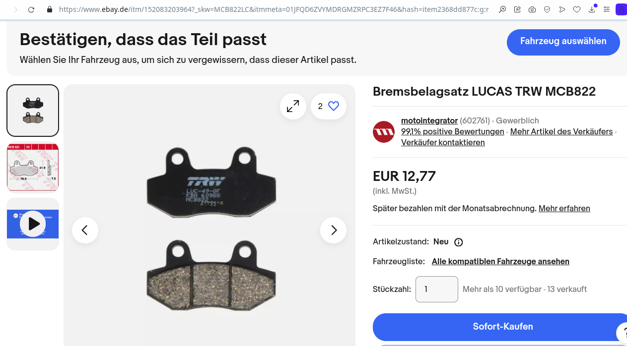 Sind - im Gegensatz zu den vorderen Bremsbelägen - auch bei denen vorrätig!