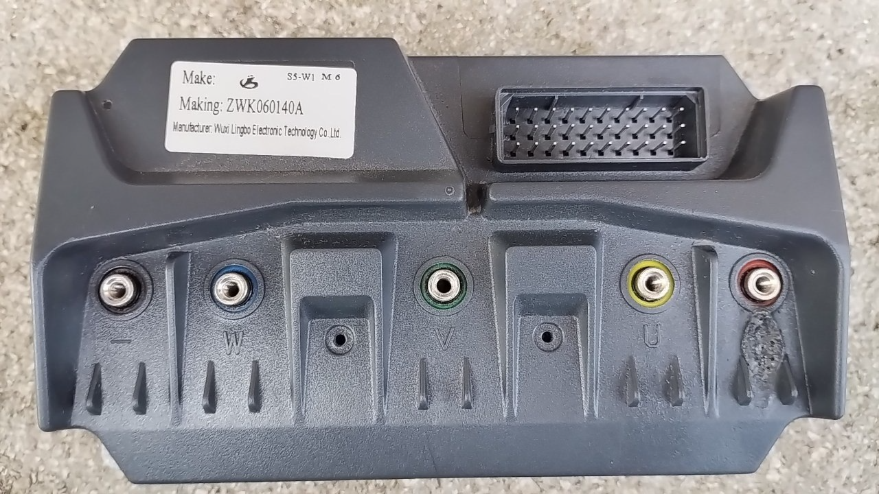Kabeloberseite: Es handelt sich dabei um einen "Holland-Controller" (bis 59 km/h laut Tacho), der die abgegebene Leistung an den Motor nicht mehr künstlich begrenzt.