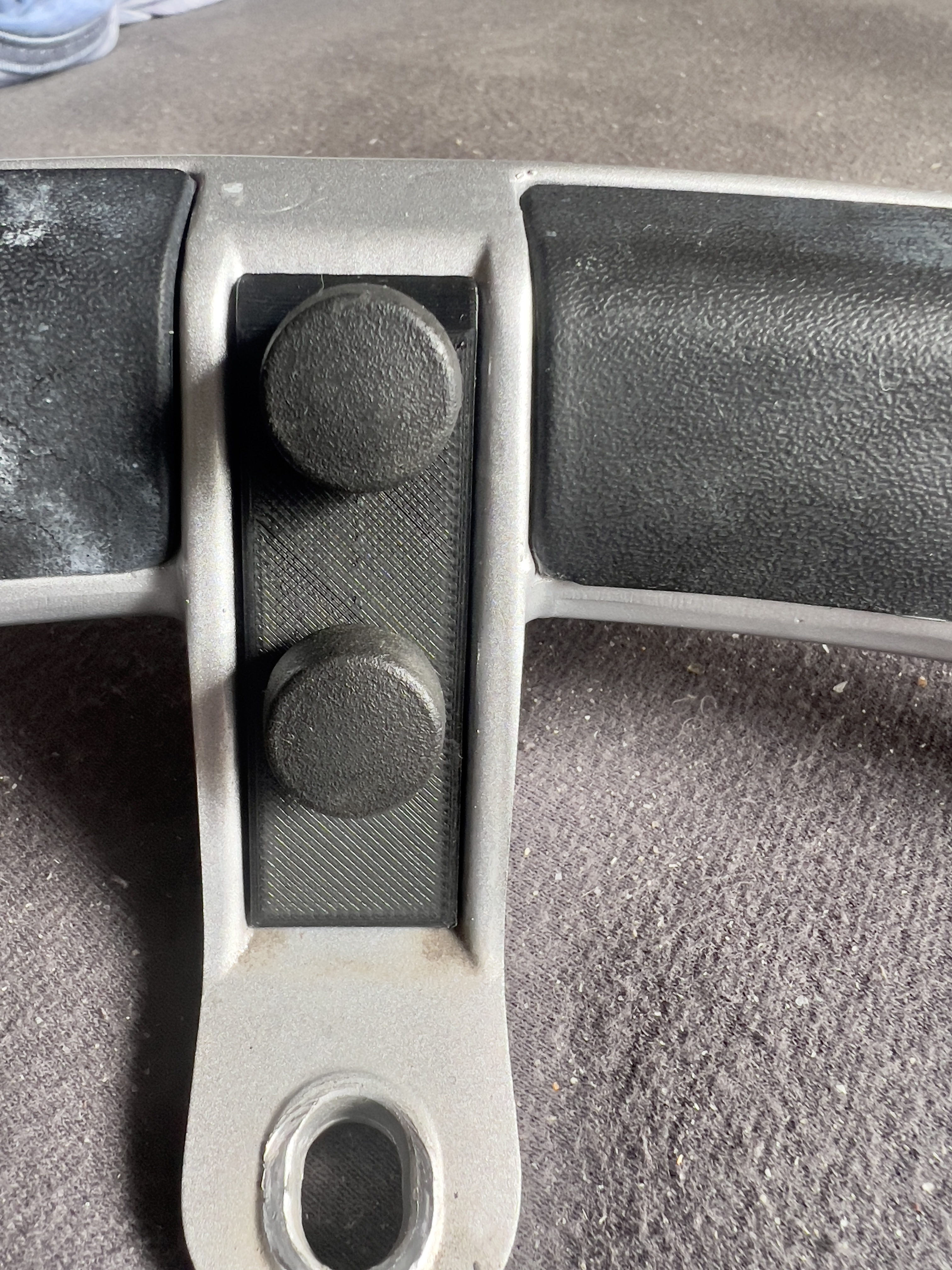ich habe die Lehne abgebaut und den Spalt mit einer Kappe (selbst 3D-gedruckt) abgedeckt. Sieht für mich ganz gut aus, ich habe auch die beiden Schrauben samt Schutzkappen wieder angebracht.