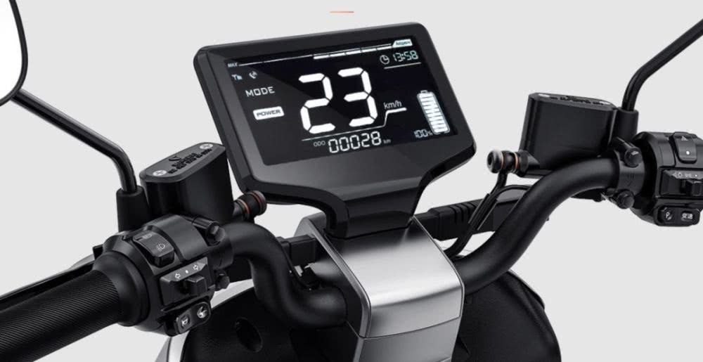 .Was sofort ins Auge sticht, das große Staufach mit 26 Liter, 7Zoll Display, Seiten und Hauptständer.