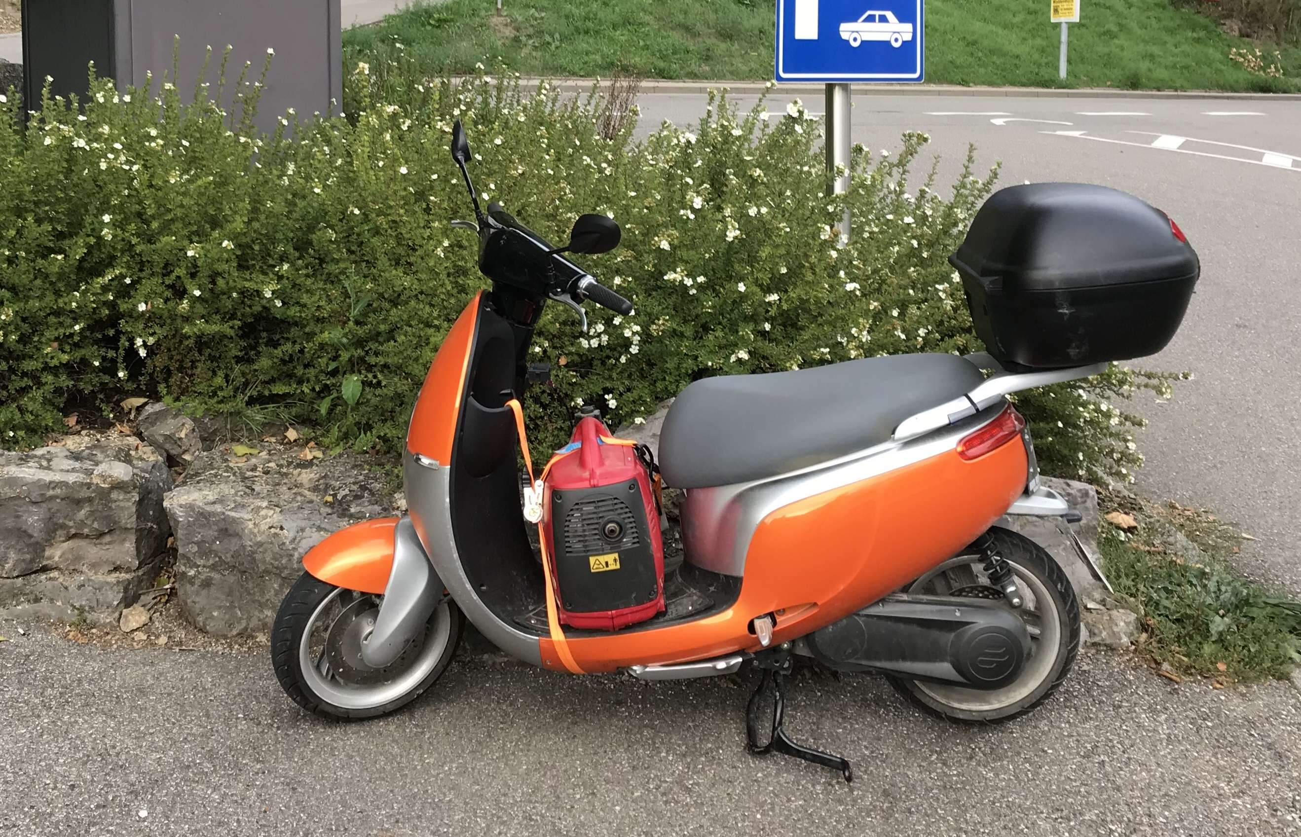 Was haben wir gelernt? Ich bin abermals nicht komplett stehen geblieben, Top! , die Leistungsreduzierung setzt erst sehr spät und selbst dann rollert man unter normalen Bedingungen noch mit 25km/h durch die Gegend, TOP! Ich konnte im Schnitt 18,4 Wh/km in hügeligem Gelände realisieren, Absoluter Wahnsinn soweit es mich angeht. Bei meiner entnommenen Menge reicht das für 95 km (der bestimmte Wert hat einige Ungenauigkeiten und wurde aus zwei Chargen zusammengebastelt), bei Nennkapazität des Akkus sollten 103 bis 108 km möglich sein. 100km sind ganz knapp, im flachen ohne gross Wind aber ziemlich sicher erreichbar. Betrieb als serieller Hybrid zwar nicht getestet, kalkulatorisch ist ein Betrieb bis etwa 30km/h bilanziell positiv bis neutral, darüber agiert er als Reichweitenerhöher. Spritverbrauch bei 30km/h etwa 1,5 l/100km. Darüber, darunter sozusagen. Im Automobilindustrielügenmix dann deutlich darunter. Fairerweise muss man die Generatorstunde jedoch mit 3 Eur ansetzen und dann wird es eine wirtschaftliche Katastrophe.